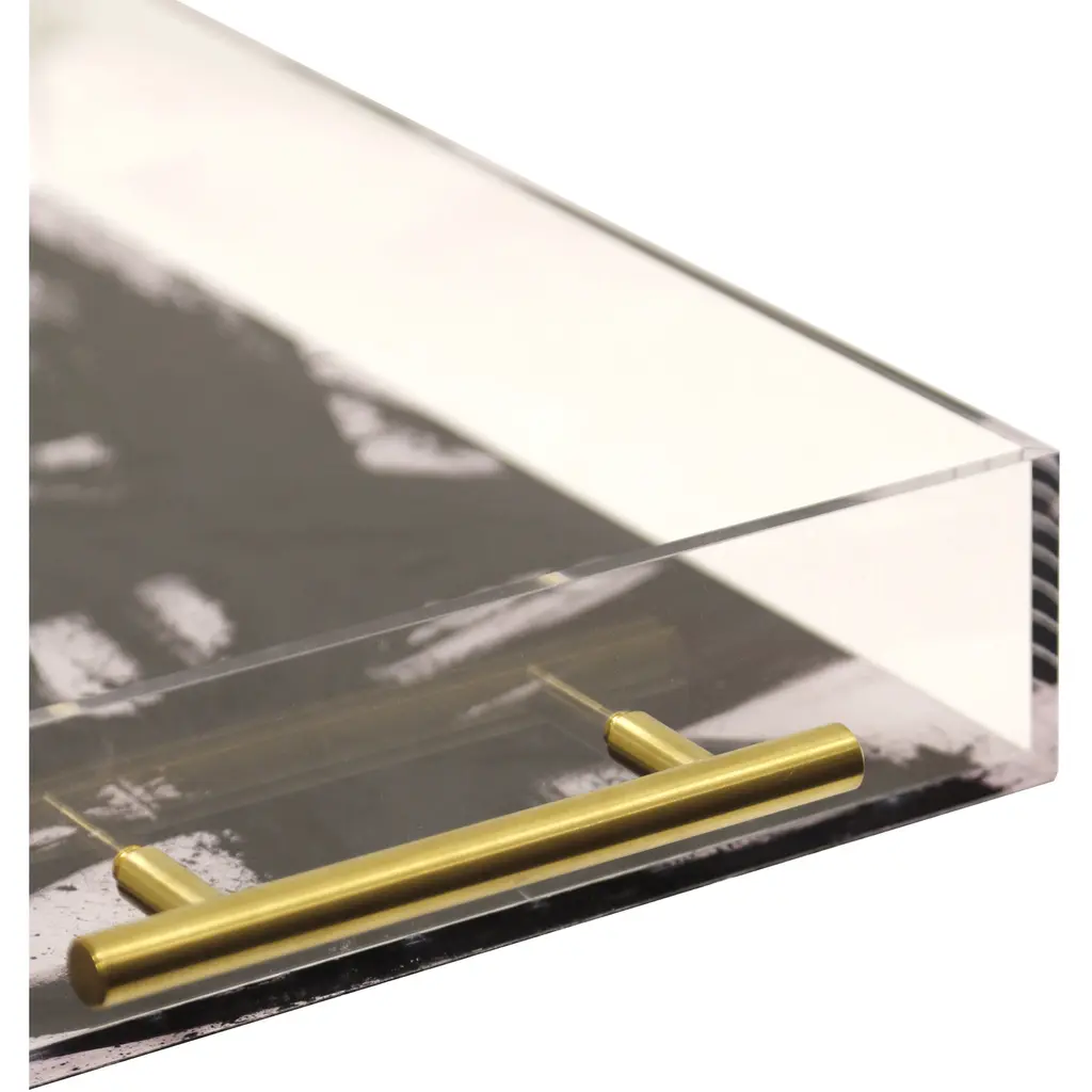 The Barbarou tray combines abstract art with practicality for your living room or entryway. Inspired by transitional design, this large tray features an eye-catching, abstract print, adding an artistic touch to your living space. With its gold handles, this modern tray can effortlessly carry drinks or decor from the kitchen to the dining room, making entertaining an absolute breeze.
