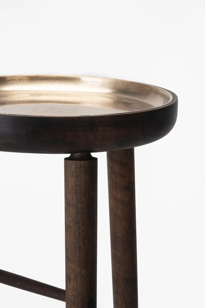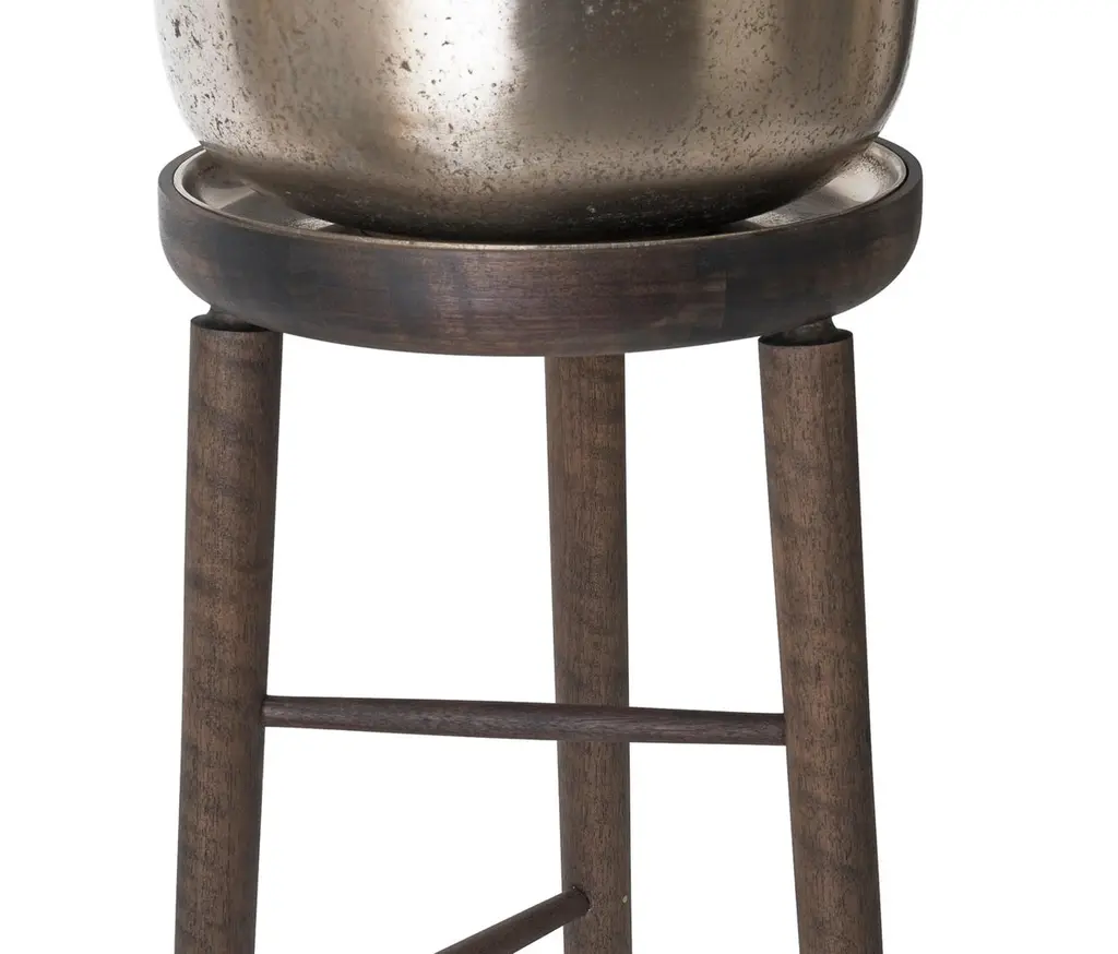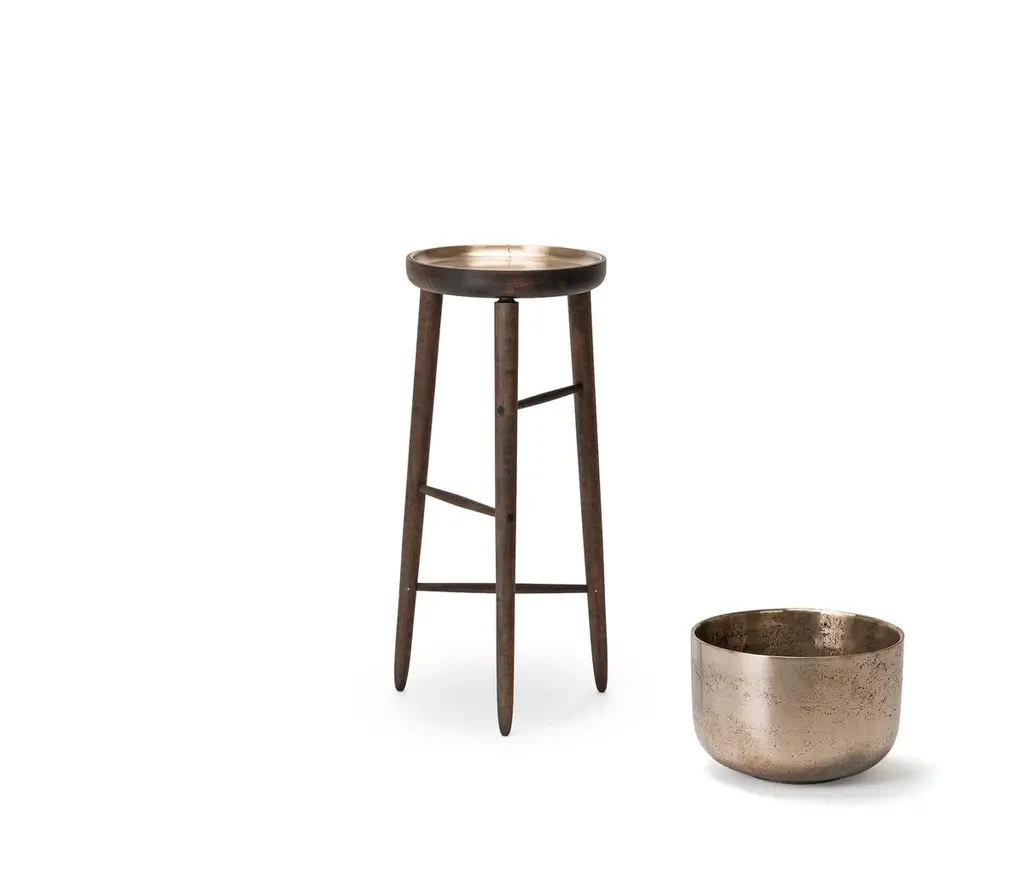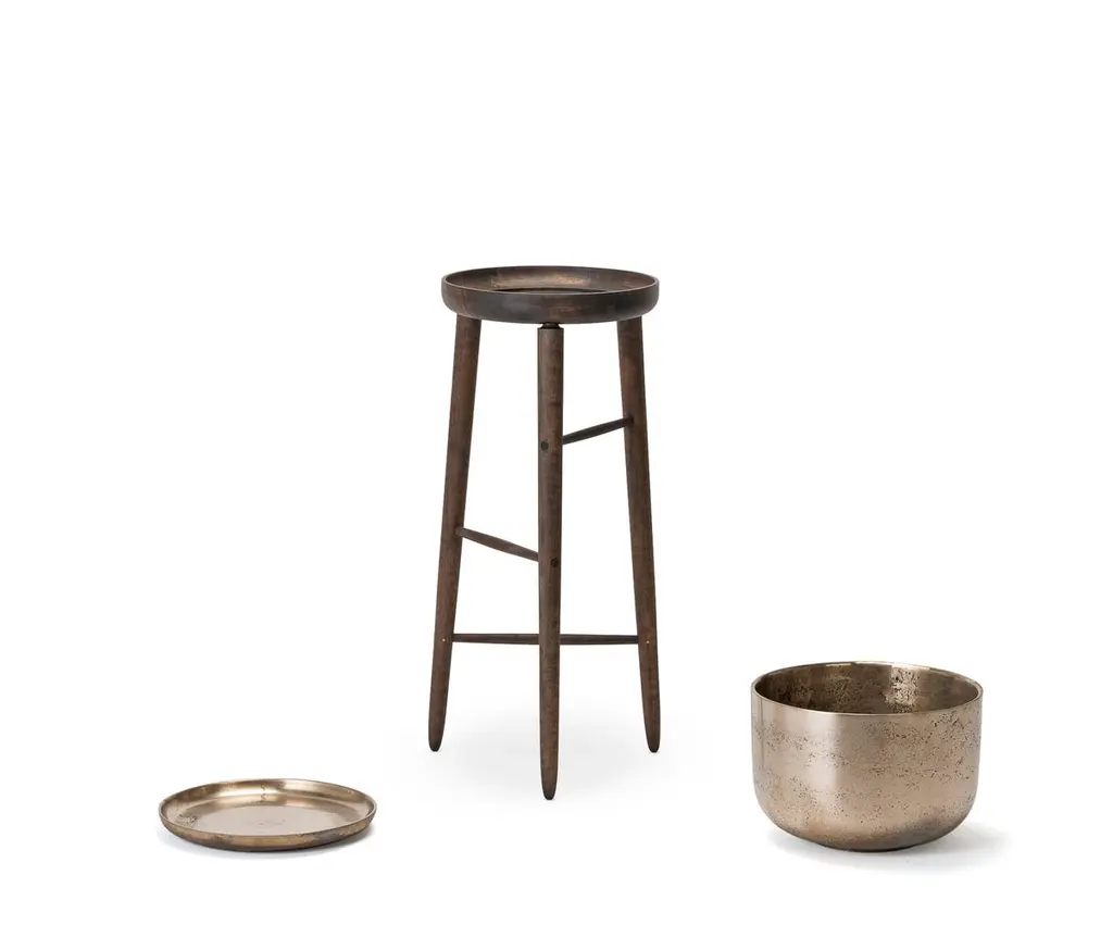 Baré Tall Planter, Walnut With Cast Bronze Tray And Planter