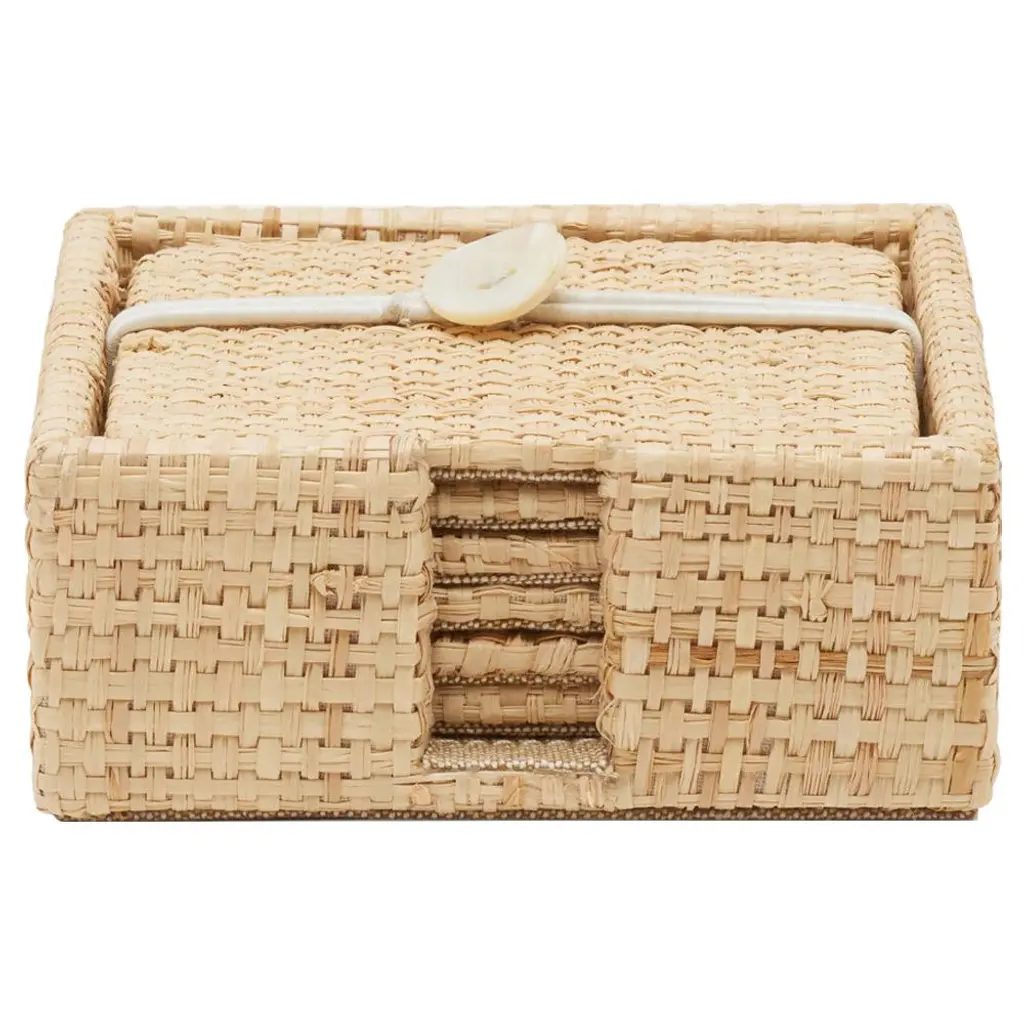 Barth Coastal Beach Natural Raffia Cocktail Napkin Tray - Set Of 2