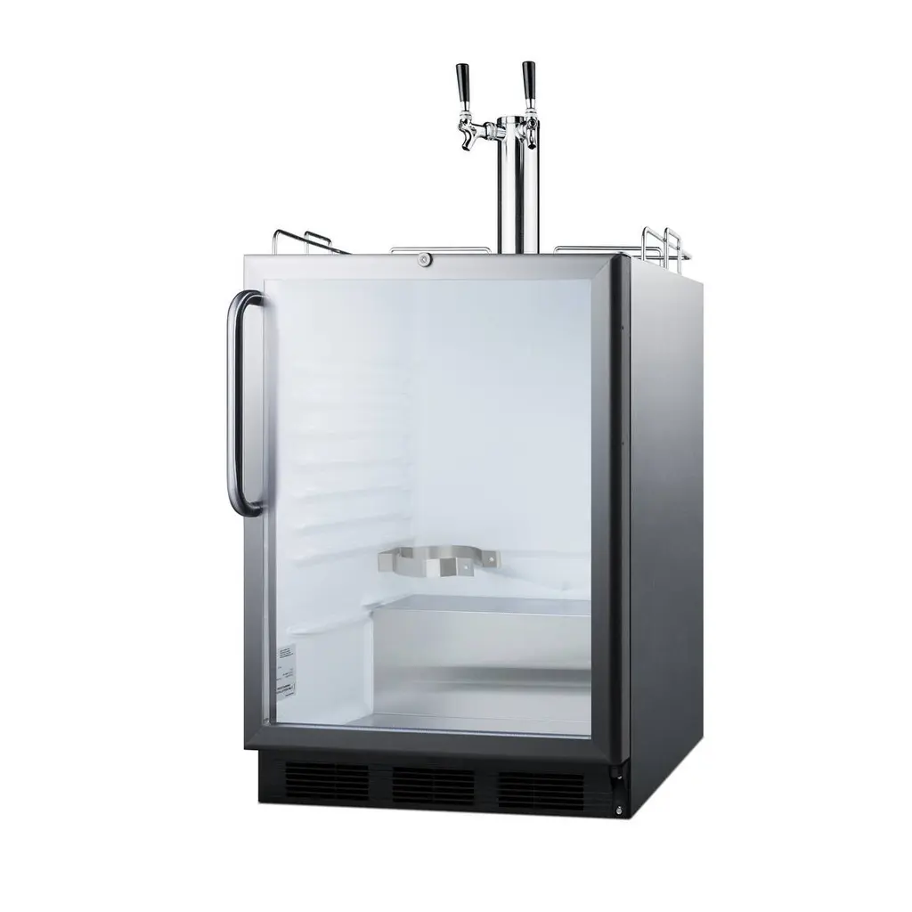 Beer Kegerator, Tap Draft Beer Dispenser, Full Size Keg Refrigerator With Shelves, Co2 Cylinder, Drip Tray & Rail - Dual Tap