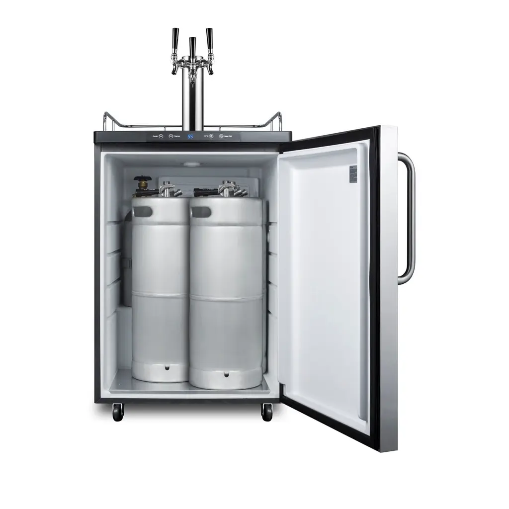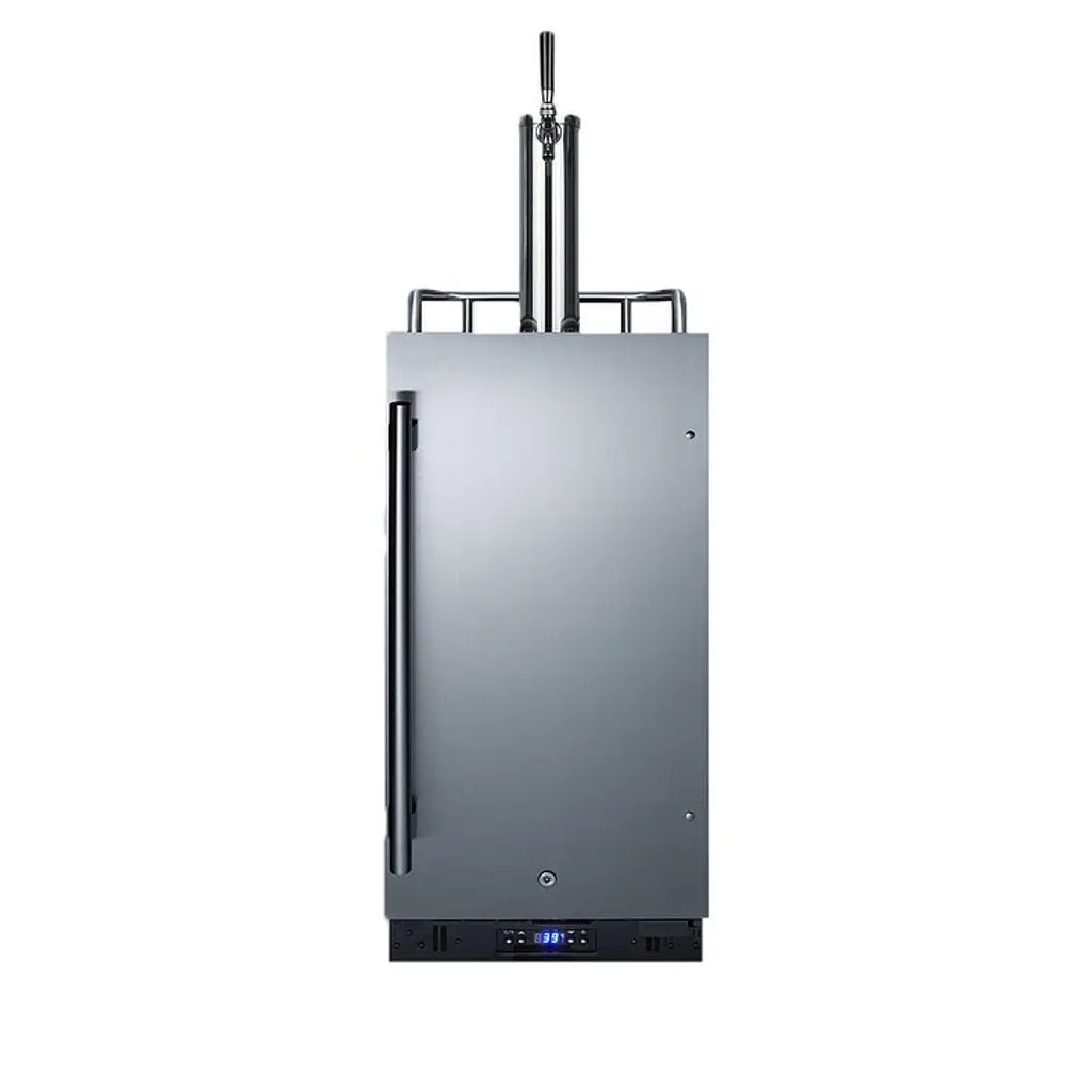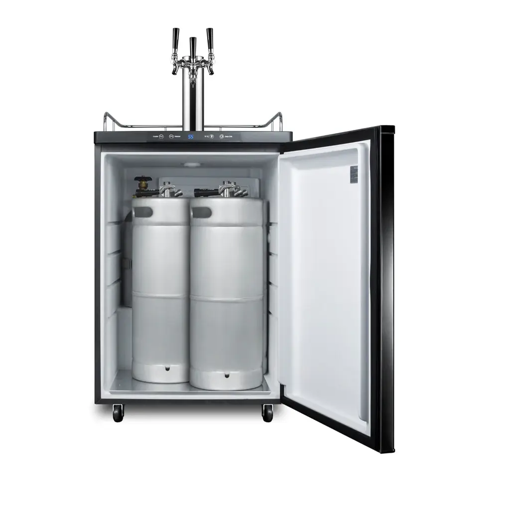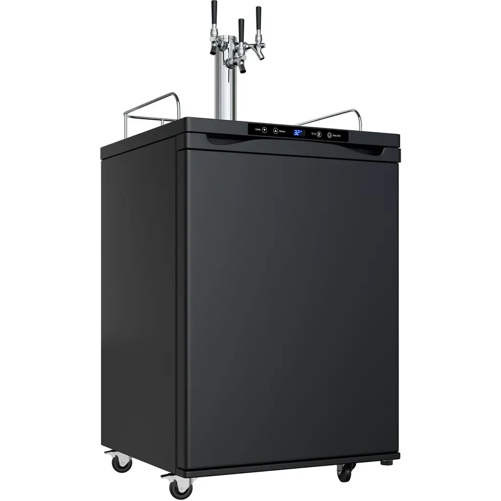 Taste the Perfect Beer: Are you ready to enjoy a refreshing beer? Our beer kegerator keeps your beer fresh at a low temperature, while quickly chilling it with the fan cooling system. With its auto-defrosting design, it always maintains the best performance. The extended 9.8 ft long beer hose ensures proper foam, resulting in the best flavors and taste. Spacious and Reliable: We offer an external bracket for the CO₂ tank, which helps save space inside the kegerator. The kegerator itself is spacious enough to accommodate beer barrels of varying sizes, including US-standard full-size, quarter, and sixth barrels. Plus, there are two additional shelves provided, which allow you to use the kegerator as a refrigerator as well. Set the Right Temperature: The keg refrigerator has a digital temperature control panel that lets you easily adjust the inner temperature from 32 to 75.2℉. This allows you to chill your beer to your preferred temperature. Plus, if there is a power outage, the refrigerator will automatically restore the temperature you set once power is restored. Designed with You in Mind: This LED light makes it easier to see and grab a cold drink at night. It also comes with four wheels, making it easy to move around. You can lock the two front wheels to prevent it from sliding. The drip tray catches spills and keeps things clean. Plus, the stainless steel guard rail provides extra safety. Everything You Deserve: Installing our beer tap kegerator is a breeze. It comes with all the necessary accessories, including a dual / single tap beer tower, a beer line, a CO₂ tank (empty), a tank bracket, and an installation kit. We also provide hose clamps and gaskets to prevent leaks. So, there's no need to worry about a thing! Package Content 1 x Beer Kegerator 1 x Dual / Single Tap Beer Tower 2 x Shelves 1 x Beer and Air Line 1 x D-type Sankey Keg Coupler 1 x CO₂ Tank Regulator 1 x 5 lbs CO₂ Tank(empty) 1 x Wrench 1 x User Manual