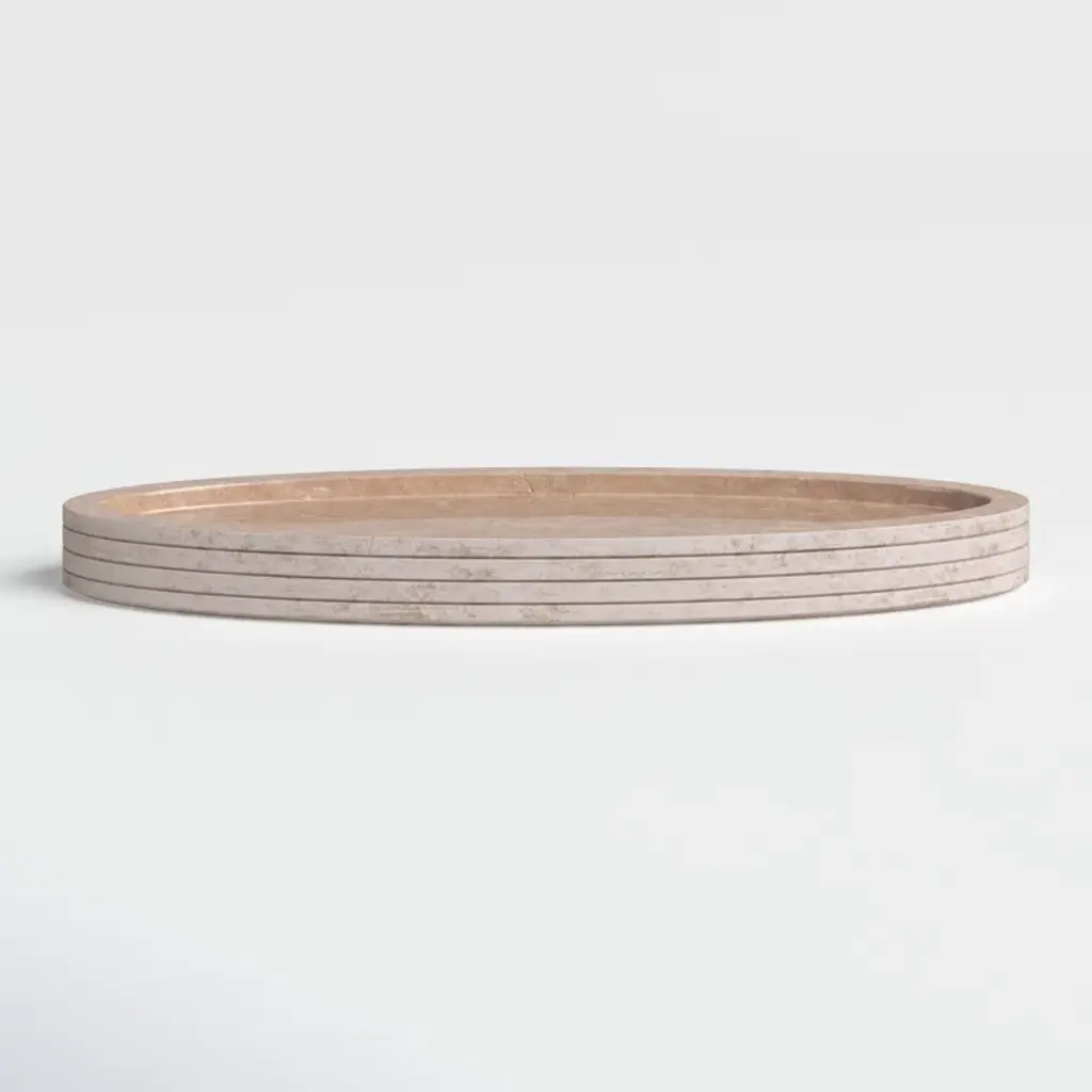 Introducing the Tray Arman, a beautifully crafted piece made from luxurious travertine. Its organic shape adds a touch of natural elegance to any space. Each tray is unique, showcasing the distinctive color variations and textures inherent in travertine, making it a one-of-a-kind addition to your decor. Perfect for serving or displaying, the Tray Arman effortlessly combines style and functionality. Elevate your home with this exquisite tray that embodies the beauty of natural materials, adding sophistication to your gatherings or as a stunning accent on any table.