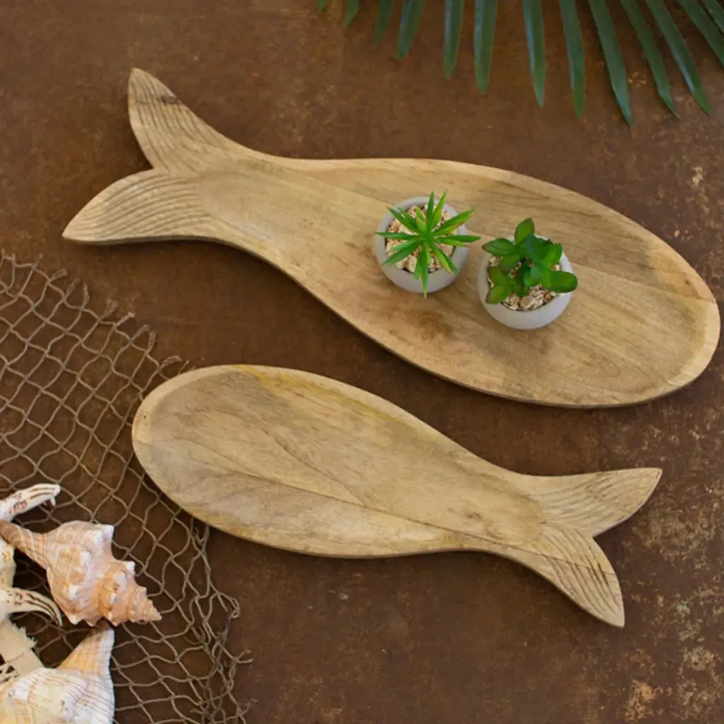 These nesting fish trays are carved in India to deliver a catch to your home. Use these trays for display or serving up fresh fun. The perfect accent to your beach house or themed kitchen, these trays also make great gifts.