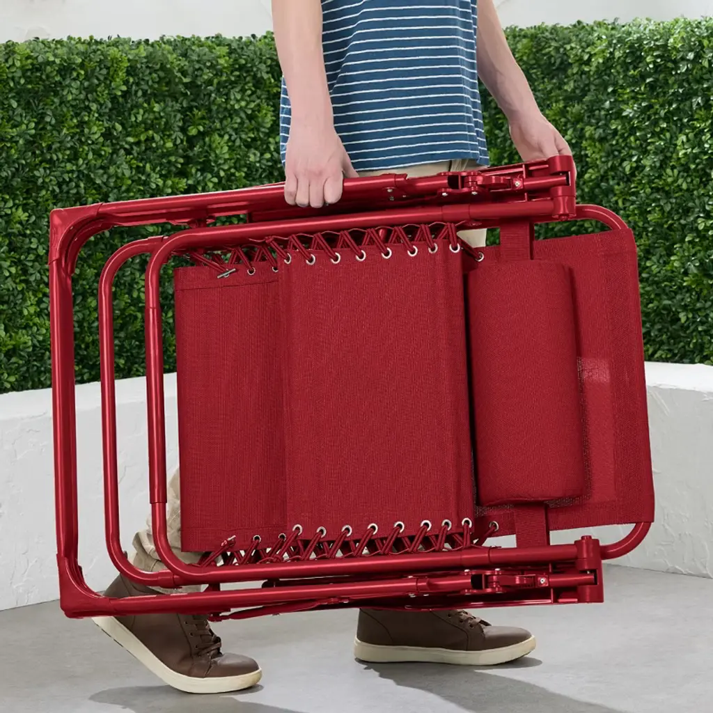 Monochromatic Zero Gravity Chairs offer a sleek, modern look with their fully color-coordinated frames and seats, making them a stylish addition to any outdoor space. With a lockable reclining system, these chairs smoothly adjust to your body's weight, providing an effortless transition to a zero-gravity position. Their compact, foldable design ensures they are perfect for home, the beach, the park, or any outdoor adventure. Crafted from premium, UV-resistant textilene mesh and supported by a durable steel frame, these chairs deliver exceptional comfort and support. The detachable tray, featuring two cupholders, a phone mount, a tablet holder, and a comfy headrest, adds convenience for extended relaxation sessions.