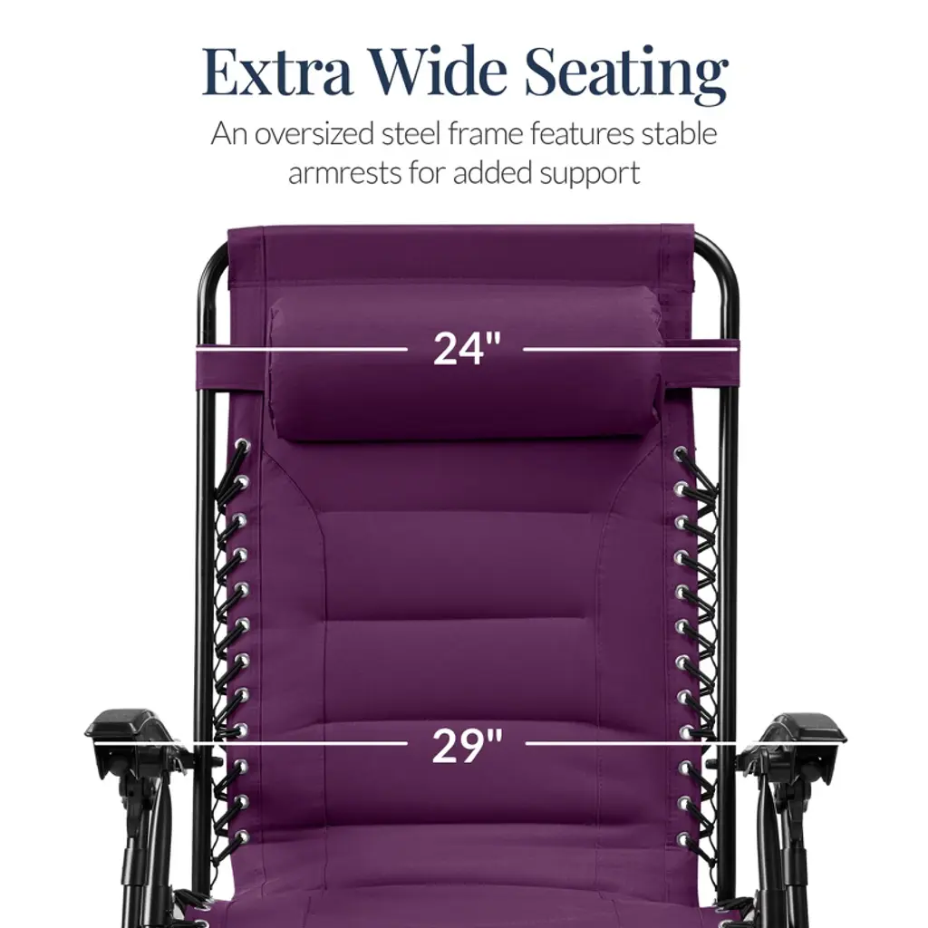 Best Choice Products Oversized Padded Zero Gravity Chair, Folding Outdoor Patio Recliner W/ Side Tray - Amethyst Purple