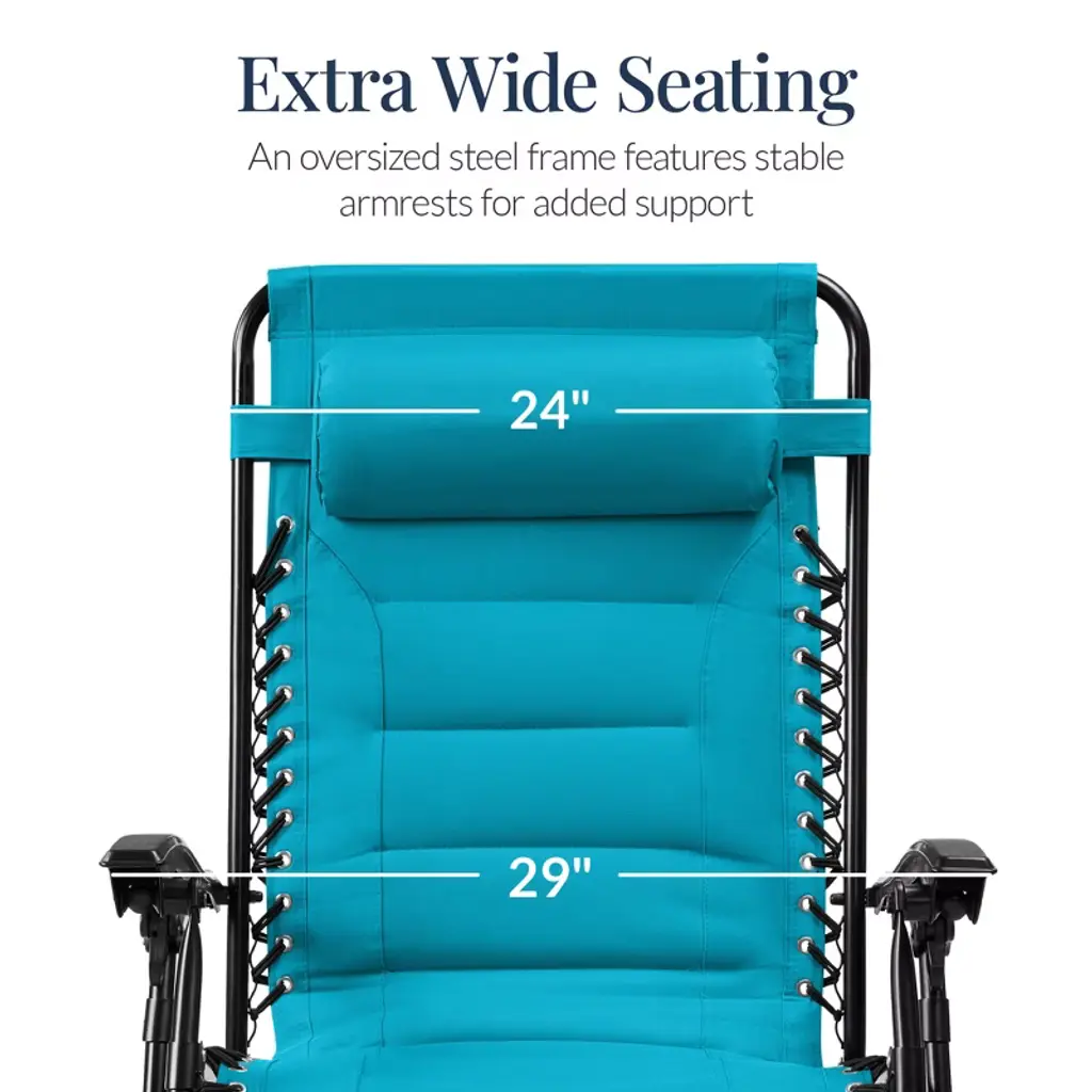 Best Choice Products Oversized Padded Zero Gravity Chair, Folding Outdoor Patio Recliner W/ Side Tray - Aqua Blue
