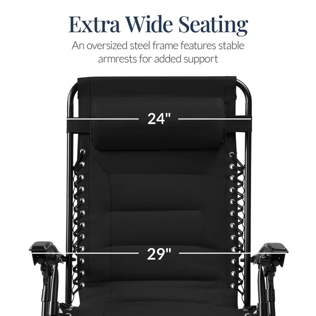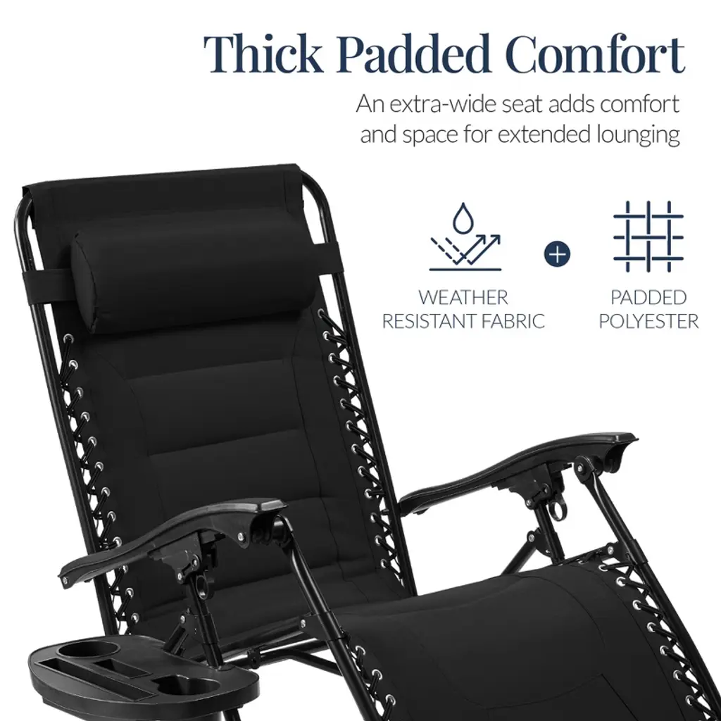 Best Choice Products Oversized Padded Zero Gravity Chair, Folding Outdoor Patio Recliner W/ Side Tray - Black
