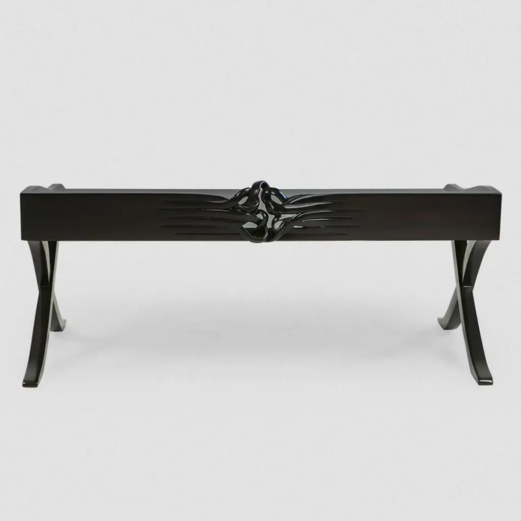 Tray black Mahogany in solid hand-carved mahogany wood in black lacquered finish.