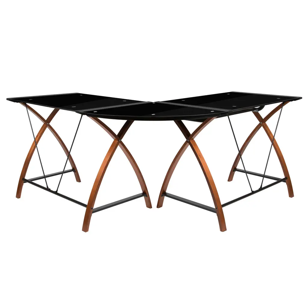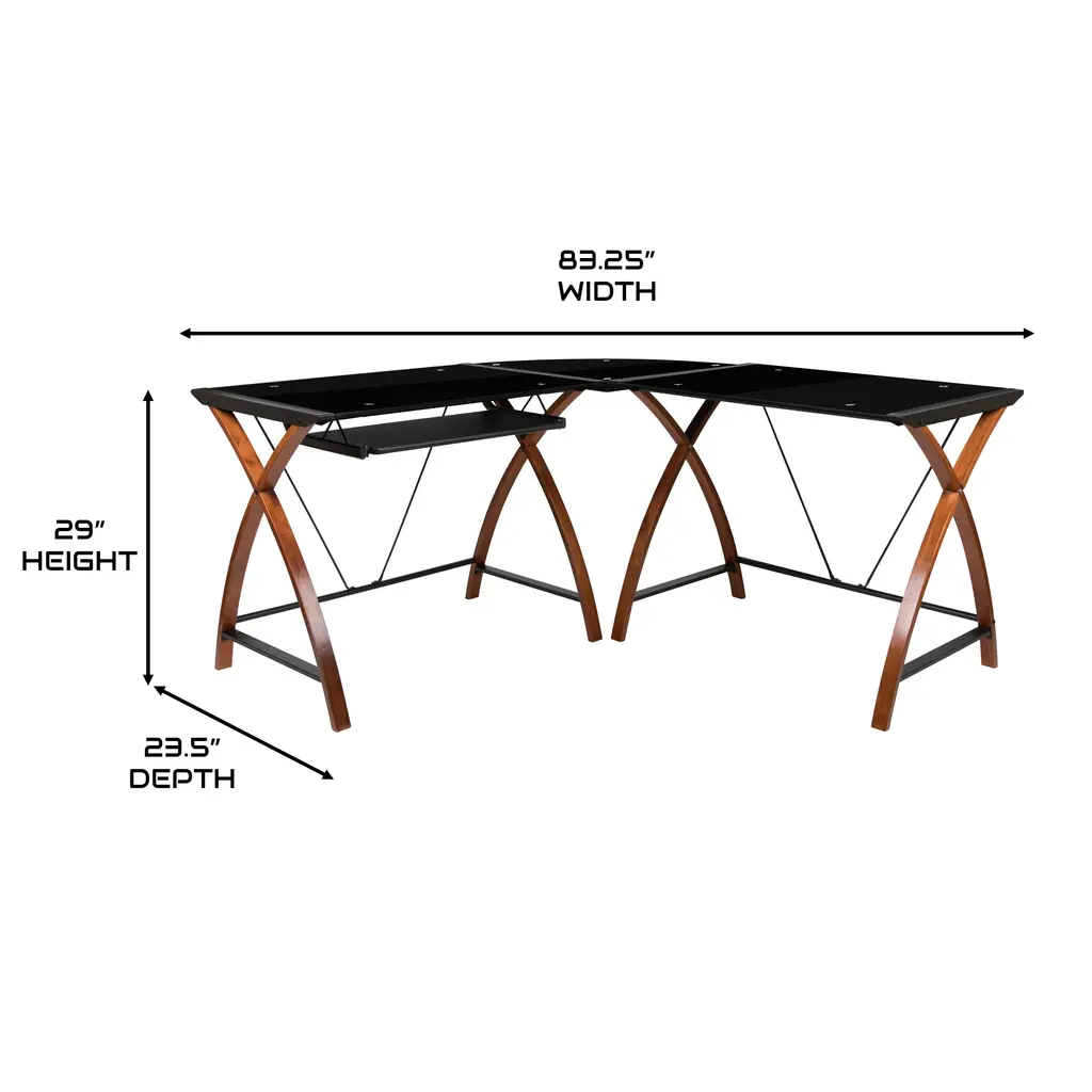 Blackarc Dusk To Destiny L-Shaped Gaming Desk With Tempered Glass Surface And Crisscross Legs - Sliding Keyboard Tray