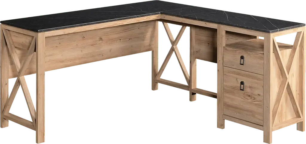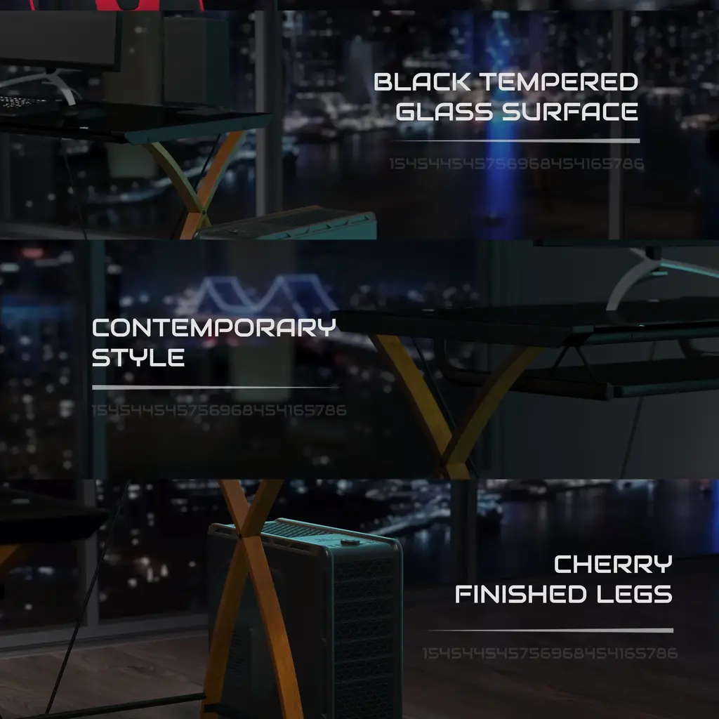 Downloading Data Package: The new dawn is here with the Dusk To Destiny gaming desk outfitted with all the post-modern features. Cool as black ice with a 5mm tempered glass surface and a powder coated brace frame. The 83.25” overall diagonal width is a perfect corner shape design or stands to impress out in the open. The well-rounded 33.75” wide connector piece provides tactical correspondence between the two primary 39.25” wide desks. Bonus content includes a stealthy sliding keyboard tray.