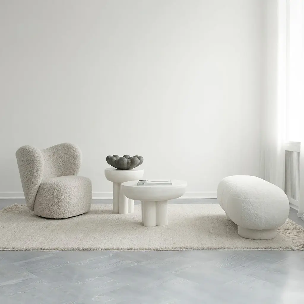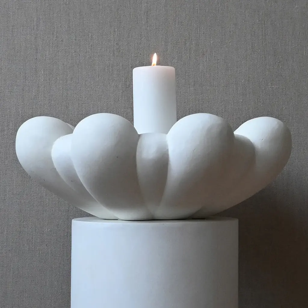 Inspired by floral shapes, Bloom emphasizes soft and organic shapes into a collection of sculptural ceramic vases and bowls. Elegantly sculpted, each Bloom ceramic is characterized by several flower leaves fading into each other, reminiscing the different stages of a flower from closed to open. Bloom is an interpretation of 70s floral inspired design. But with a more raw and clean expression. The smoothly curved surface is contrasted by a strong underlying geometry and is enriched by a beautiful play of shadows around the depths of the surface. Due to its expressive design, the Bloom vases changes experience throughout the day, according to the position of light and shadows. Bloom comes in both vases and bowls and is made from ceramic or fiber concrete. The surface is hand glazed in order to achieve the unique surface texture. The colours may vary slightly, due to that it is a handmade product. The vase is not 100% waterproof, therefore a bag for fresh flowers is included. Designed by Kristian Sofus Hansen & Tommy Hyldahl.