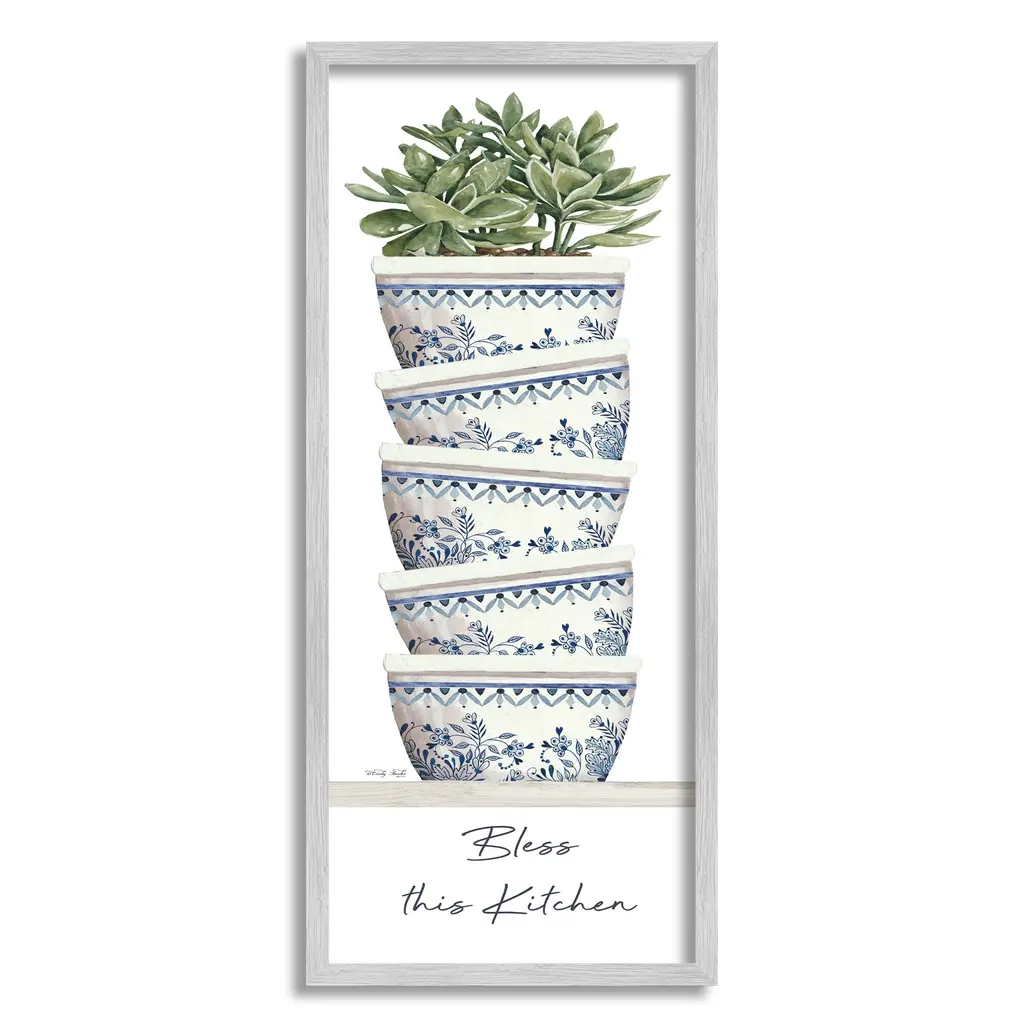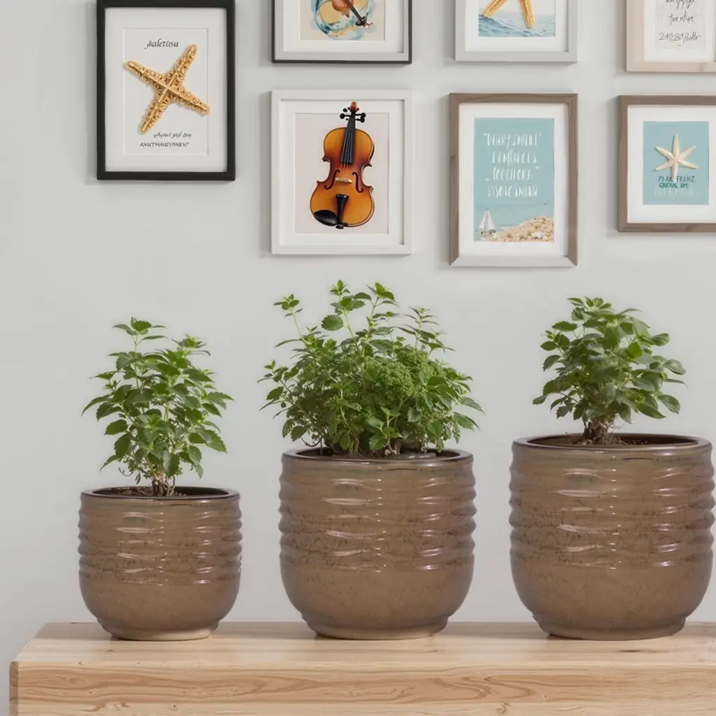 Blue & White Ceramic Herb Tray With Pots, Set Of 3