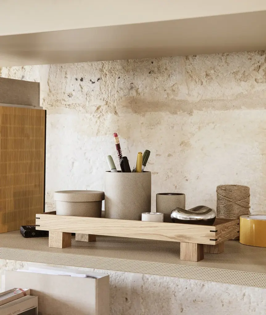 Drawing a clear line to Japanese aesthetic, the Bon series of wooden trays has a simple expression with a lightness from the four feet, lifting up the tray. With visible joints on the corners of the tray, it's made with love of classic craftsmanship, and the solid oak gives you a durable and classic tray for your morning coffees or afternoon drinks. Also can be used as a display for candles in a living space or in the bathroom as a tray for the corresponding storage jars filled with beauty essentials.