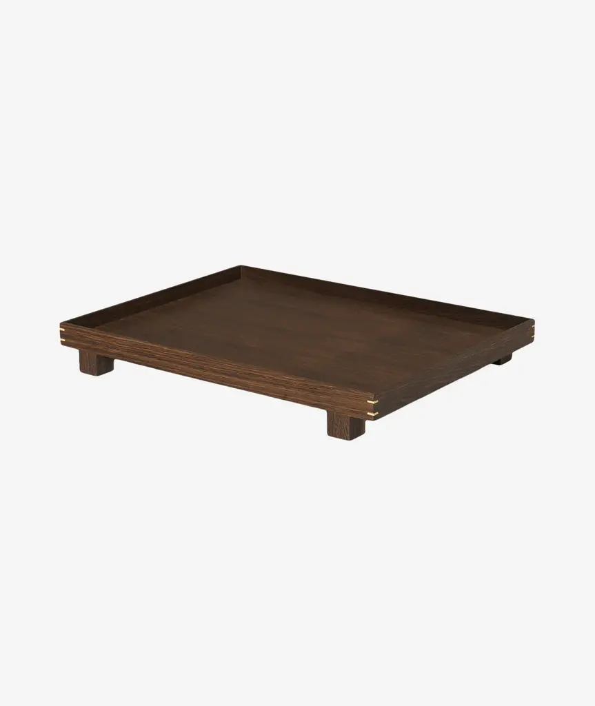 Drawing a clear line to Japanese aesthetic, the Bon series of wooden trays has a simple expression with a lightness from the four feet, lifting up the tray. With visible joints on the corners of the tray, it's made with love of classic craftsmanship, and the solid oak gives you a durable and classic tray for your morning coffees or afternoon drinks. Also can be used as a display for candles in a living space or in the bathroom as a tray for the corresponding storage jars filled with beauty essentials.