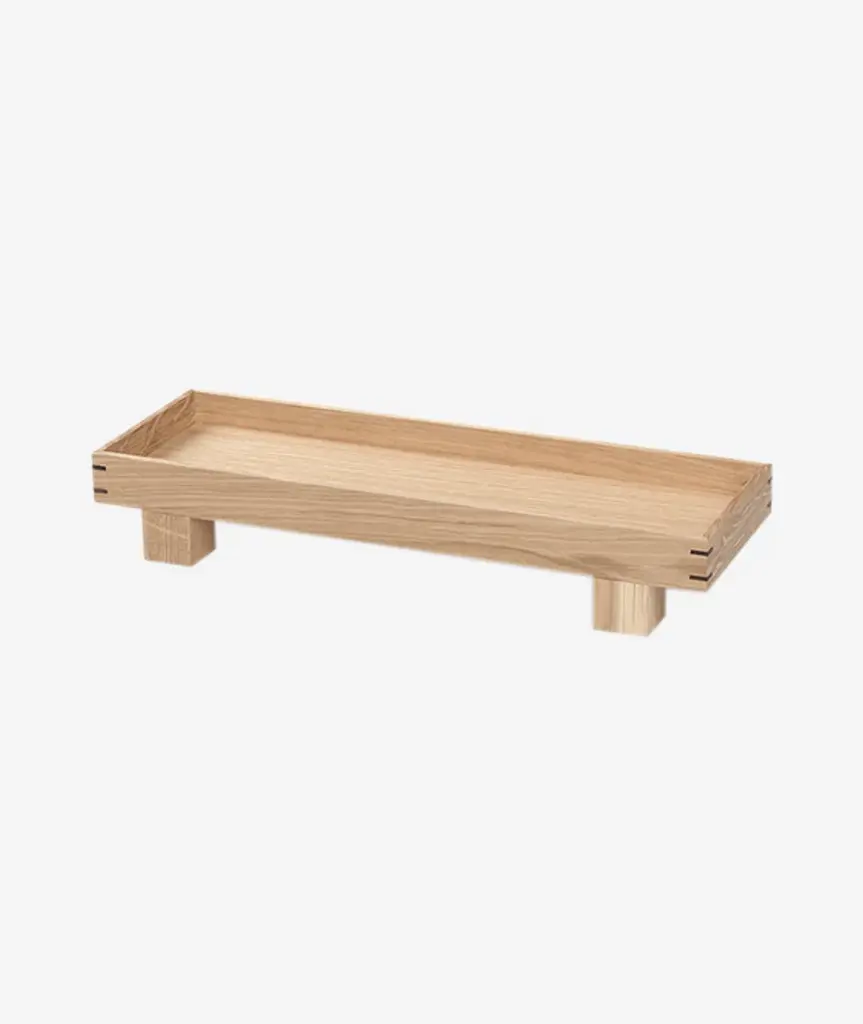 Drawing a clear line to Japanese aesthetic, the Bon series of wooden trays has a simple expression with a lightness from the four feet, lifting up the tray. With visible joints on the corners of the tray, it's made with love of classic craftsmanship, and the solid oak gives you a durable and classic tray for your morning coffees or afternoon drinks. Also can be used as a display for candles in a living space or in the bathroom as a tray for the corresponding storage jars filled with beauty essentials.