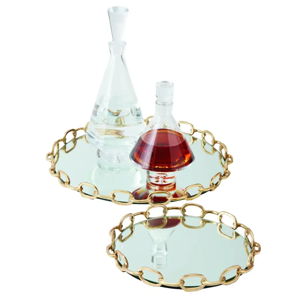 Footed clear glass tray with pewter floral patterned handles, inspired by the beautiful Rugosa Rose. Hand-set clear European crystals. Hand-wash only. Tarnish resistant. Signature luxury gift box included.