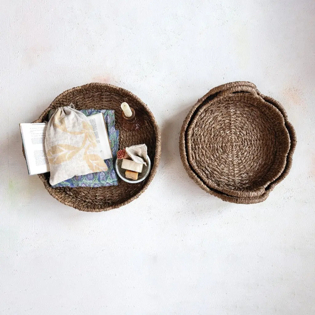Braided Bankuan + Rattan Scalloped Trays (Set Of 3)