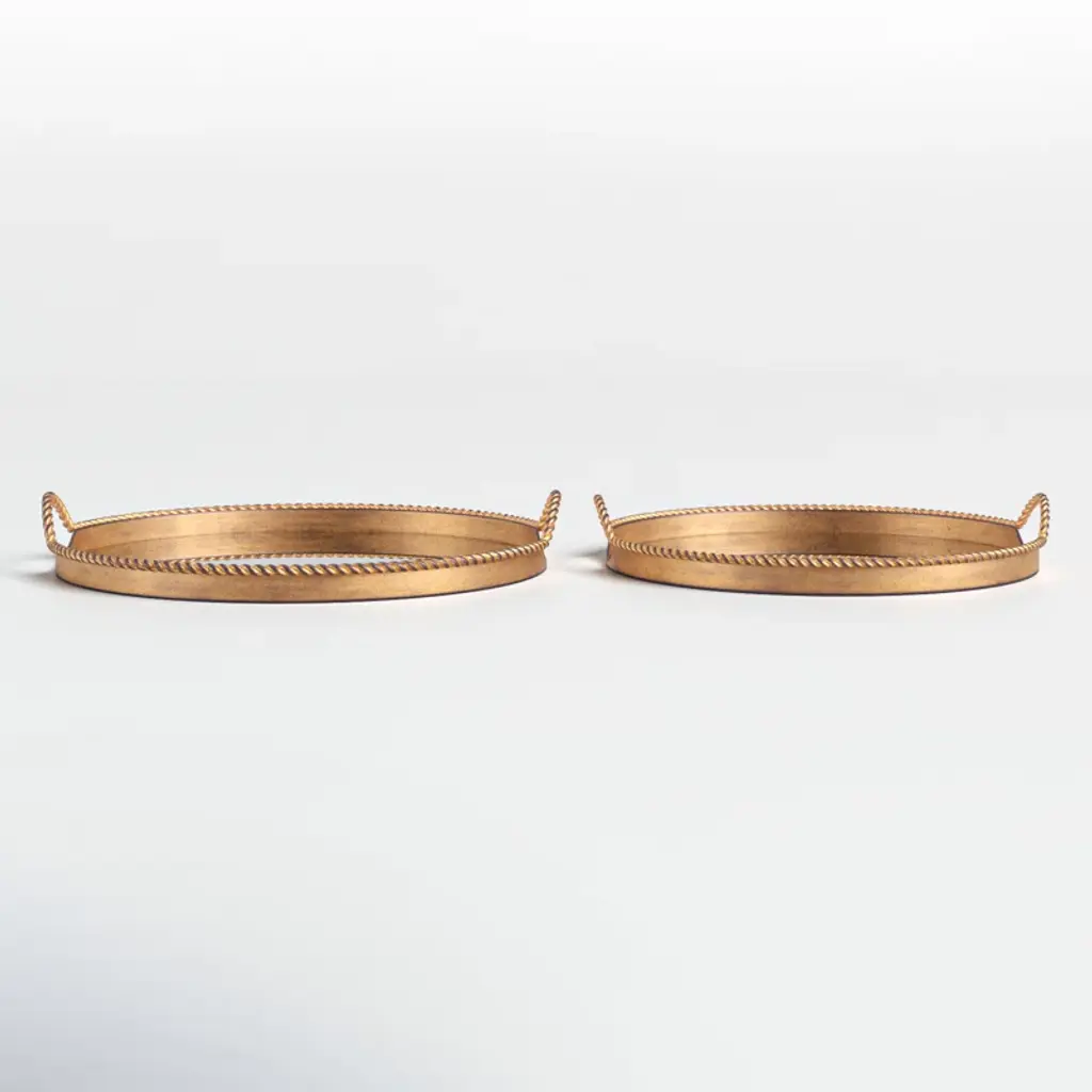 Made of cast iron and embellished with a handsome braided detail, this set of trays features a mirrored surface, reflecting the beauty of what ever is featured upon it.
