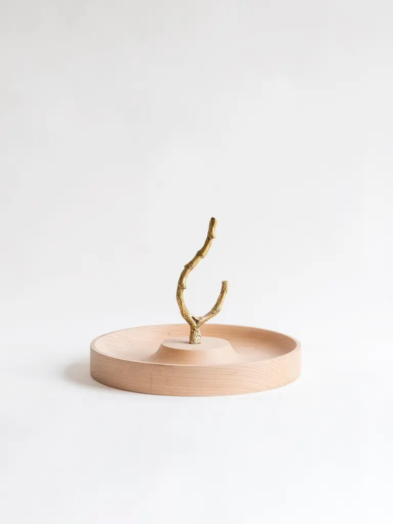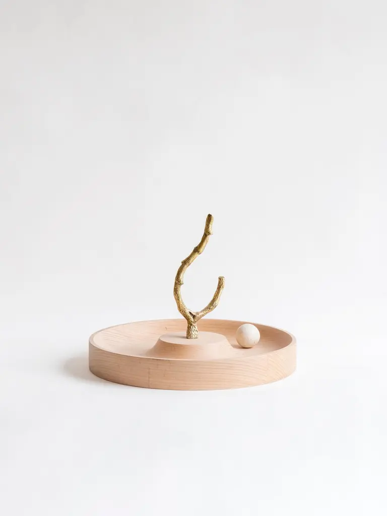 Branch T-Trays by ZPS StudioDimensions: D 2.5 x H 1.8 cmMaterials: Wood, brass.Hand lathe turned centerpieces in beech wood, with an elegant natural finish that contrasts beautifully with the central cast bronze handle, skillfully crafted by a Florentine artisan. Their versatility allows them to serve as refined trays or elegant fruit bowls, adding a touch of class and functionality to any setting.ABOUTZPSTUDIO is an architecture and design firm that emphasizes multidisciplinarity and innovation in every project. Established in Florence in 2003 by Eva Parigi and Matteo Zetti, the practice is focused on pursuing the perfect balance between tradition and avant-garde. Taking advantage of a year-lasting experience, spanning between different areas (retail, interior and product design) the work of ZPSTUDIO has earned its reputation by delivering the most accurate consultancy to its customers, providing them with an extensive and integrated vision of their needs. Attention to detail in every project is paramount to the company’s success in a broad range of works. The company’s services include interior design, architecture, product design, custom furniture and lighting, project development. Over time ZPSTUDIO works have been awarded in international design competitions, and they are being featured in leading specialized press.