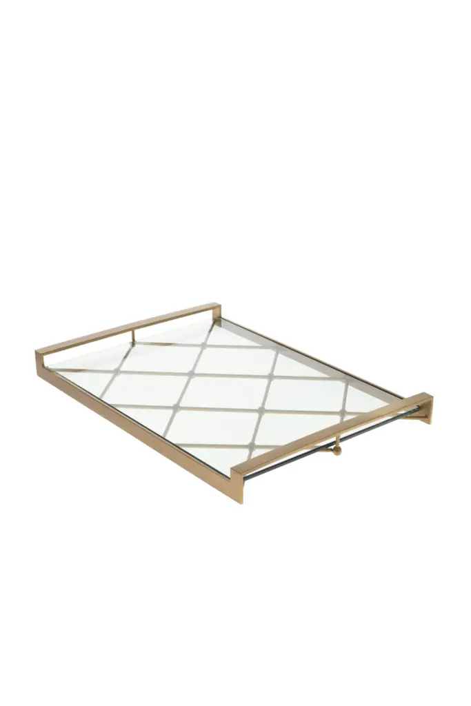 Featuring a sleek rectangular design, the Goa Tray is great for serving drinks and bites. It also makes a perfect vanity tray in your powder room to hold soaps, makeup, perfumes and such. The Goa Tray has a diamond-patterned polished stainless steel frame with rectangular handles and a clear glass plate.