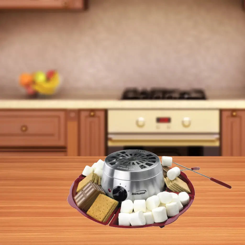 Use the Brentwood® Indoor Electric Stainless Steel S’mores Maker with 4 Trays and 4 Roasting Forks to safely make yummy s’mores indoors! It features an easy to clean stainless steel base and cover. The trays stack for convenient storage. There's no open flame for a safe and fun family experience._