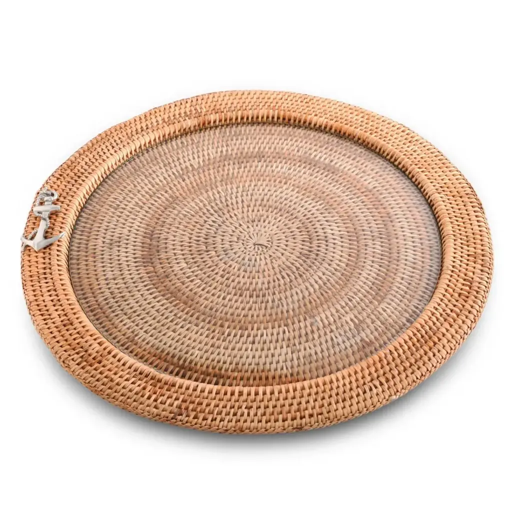 This beautifully handcrafted 11.9-inch round rattan tray offers perfect proportions for versatile use throughout your home. Made from 100% natural rattan using traditional weaving techniques, this medium-sized tray (11.9" diameter x 1.7"H) features convenient handles for easy carrying. The natural earthy tone and handwoven texture bring organic warmth to any space while providing a practical surface for serving, organizing, or decorative displays. Ideal for bedside tables, kitchen counters, or as part of a layered display, this tray offers multiple functions while maintaining a compact footprint. The sturdy woven construction ensures durability while the lightweight design allows easy movement between rooms. Whether used for personal organization or serving snacks, this handcrafted piece adds both functionality and natural beauty to your home. Perfect Medium 11.9-Inch Size With 11.9" diameter and 1.7" depth, this tray offers ideal proportions for smaller surfaces while providing ample functional space. 100% Natural Handwoven Rattan Crafted from premium natural rattan using traditional techniques, this tray showcases authentic craftsmanship and natural texture. Convenient Integrated Handles Features built-in handles for easy carrying and transport, making it simple to move between rooms for various uses. Versatile Functional Use Ideal for serving snacks and drinks, organizing essentials, or decorative displays in bedrooms, kitchens, or living areas. Easy Maintenance & Cleaning The woven surface can be quickly wiped clean with a damp cloth, maintaining its natural beauty with minimal effort.