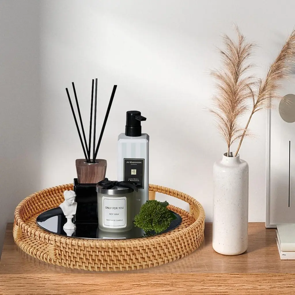 Brinjoy 11.9" Round Woven Tray - Handmade Rattan Serving Tray With Handles (Medium)