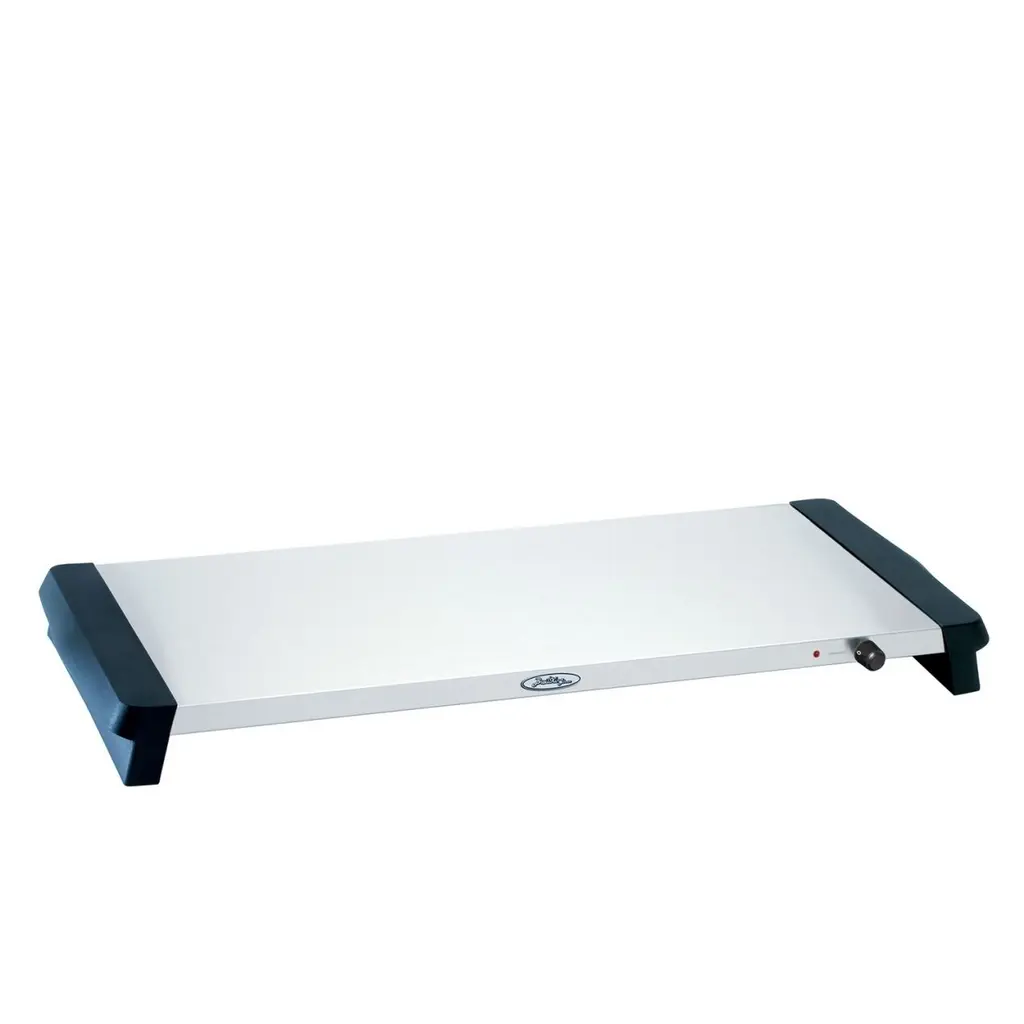 BroilKing's commercial grade extra large stainless steel warming tray allows you to entertain your guests for hours while your dishes stay hot & ready to serve for hours! 500-watt commercial-quality extra-large stainless-steel warming tray Adjustable thermostat ranges from 155 to 205 degrees F Easy-to-clean stainless-steel warming surface; cool-touch handles Non-skid feet; safety signal light; made in the USA; UL-listed Measures 15-1/4 by 32-1/2 by 2-8/9 inches; 2-year limited warranty ● Commercial quality as used in leading hotels ● Easy to clean stainless or porcelain-on-steel warming surfaces ● Adjustable thermostat(s) 155° to 205° F ● Cool-touch handles ● Safety signal light ● 4 non-skid feet ● Two year limited warranty ● UL Safety & Sanitary, C-ULWhile we aim to supply accurate product information, it is sourced by manufacturers, suppliers and marketplace sellers, and has not been provided by Overstock.