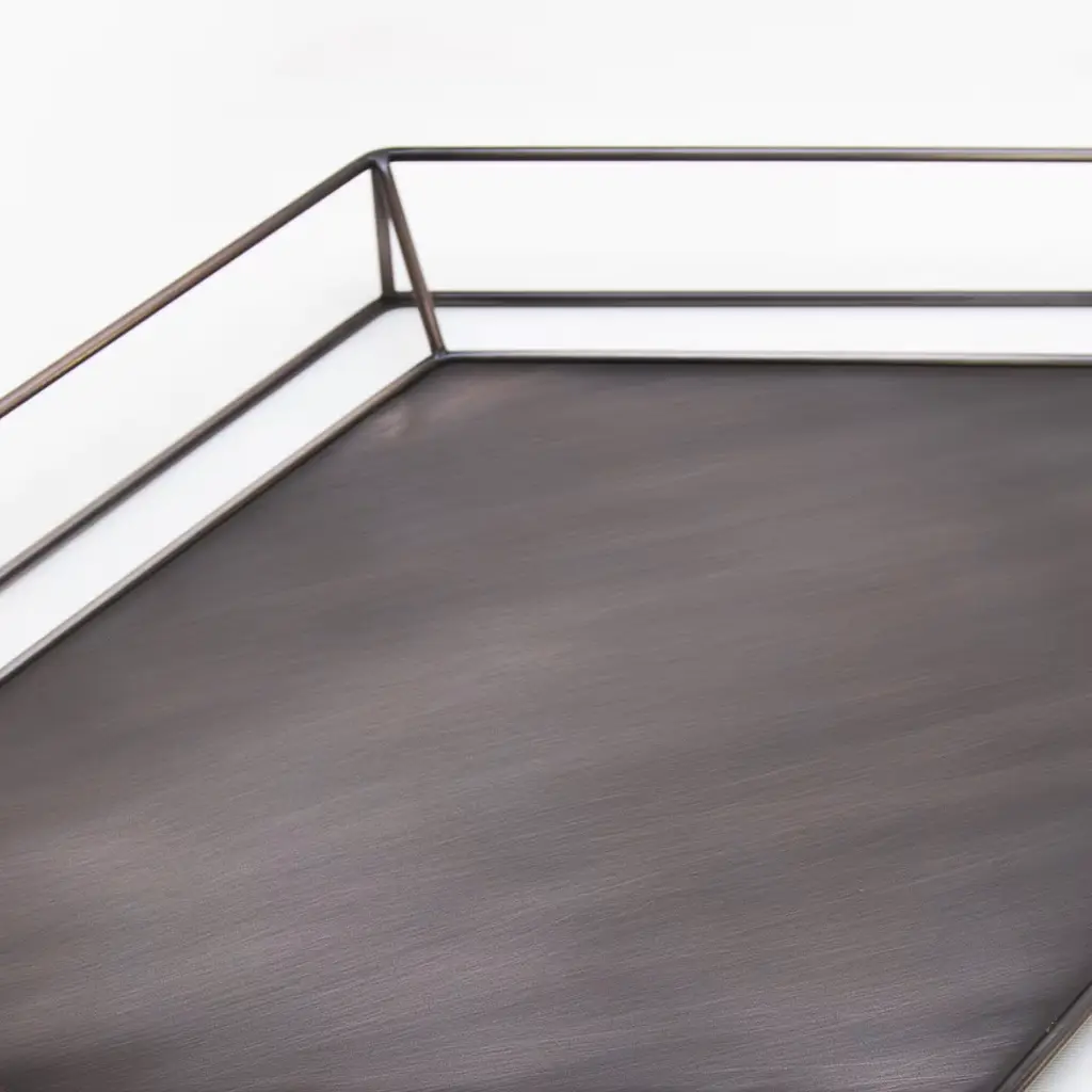 This bronzed iron kite tray is also available in brass, or copper as well as a variety of other metal and finish combinations. The piece has a smooth surface with raised sides, preventing slipping, while also making the piece easy and comfortable to hold. The aerial-inspired shape brings an element of fun and class to serving your guests.