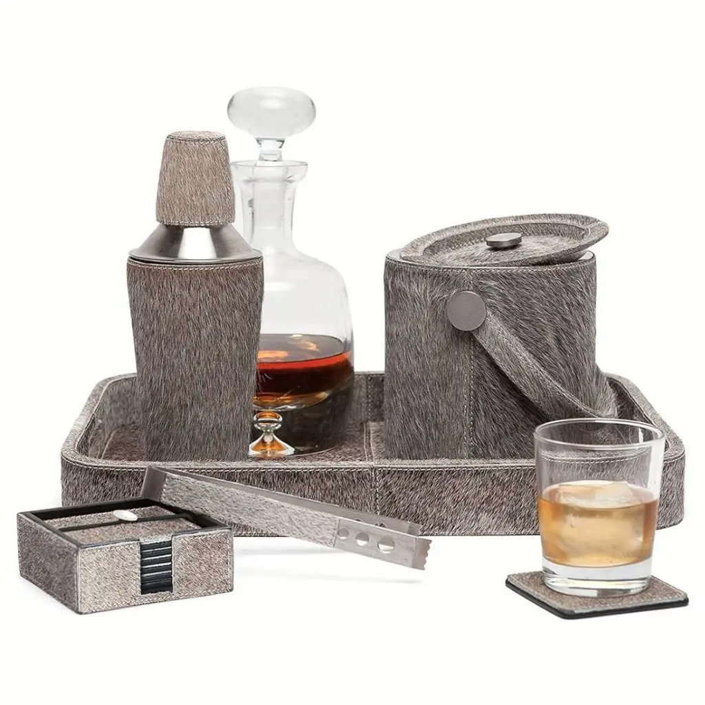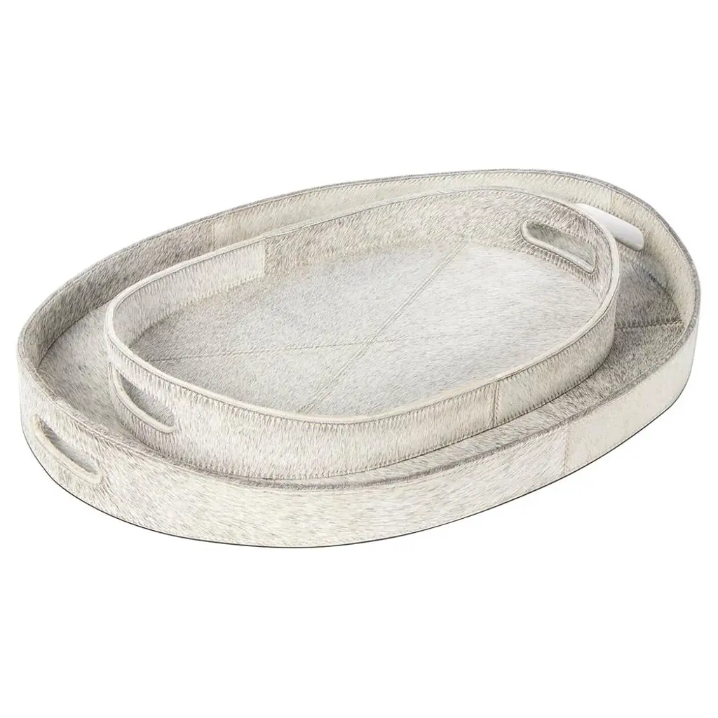 Browmley Rustic Lodge Grey Hair On Hide Rectangular Tray
