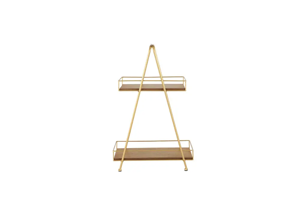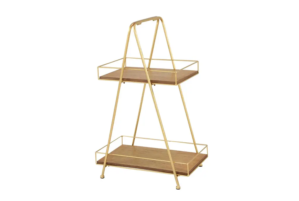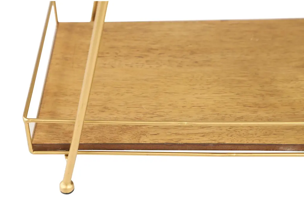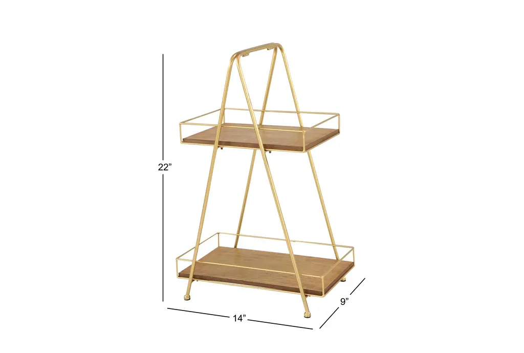 Brown Gold 2 Tiered Metal Wood Curved Tray