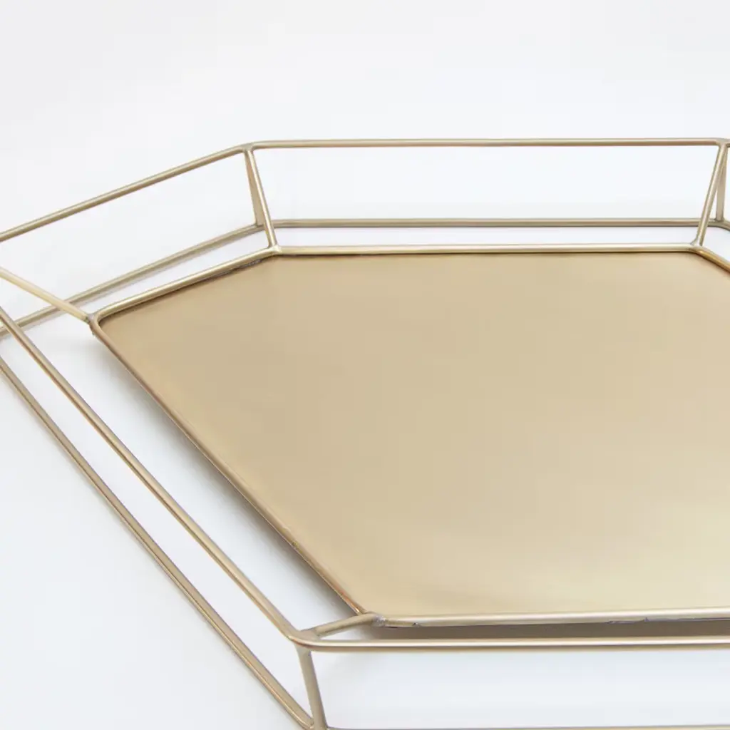 This serving tray has a playful aerial-inspired shape with a structure in brushed brass creating a sense of fun with a touch of class. The piece was designed with a smooth surface combined with its raised edges to prevent slipping as well as easy-to-hold handles for a comfortable grip.