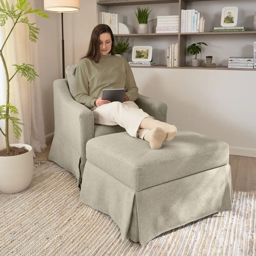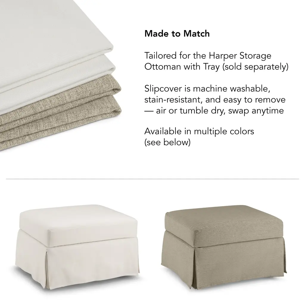 A fresh start. A seasonal change. A new shade to match your mood. The Bush Home Harper Slipcover gives your space an instant refresh, wrapping your Harper Storage Ottoman with Tray in a perfectly tailored fit. Whether you love a crisp, neutral tone or something with a bold personality, this easy-to-remove, machine-washable slipcover lets you swap styles without replacing the ottoman you love. Because sometimes, all it takes is a simple change to make everything feel brand new.