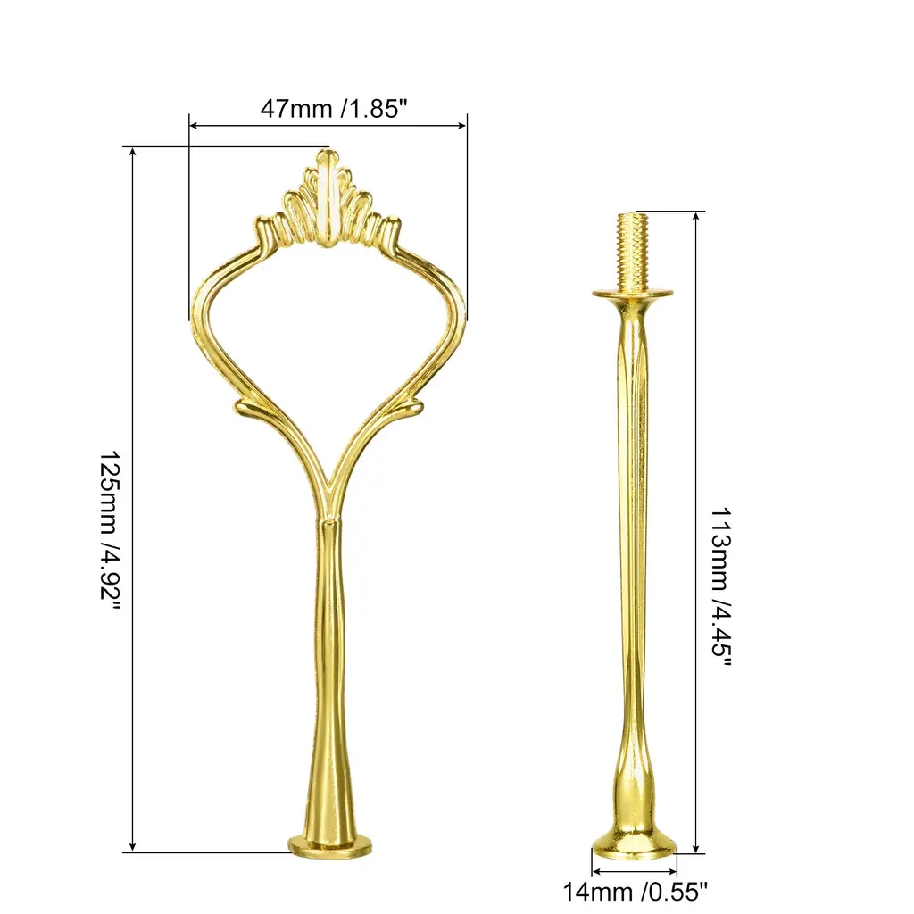 Description:Made of good hardness zinc alloy material, this cake plate stand handle is sturdy and durable to use, strong enough to ensure the stability of the stand, and can be used for a long time without fading.Works with ceramic, glass or metal plates(The Plates Are Not Included Here!) to support multi-tiered cake, cupcake or fruit trays, pair it with different types of desserts and fruits to make your plate look more exquisite and charming, having a wonderful time with your family and friends. The stand is designed with a special style handle, which looks beautiful and elegant, making it easy to carry and move, meanwhile, easy to install and connect poles together to form long poles. Detachable and easy to store, good for daily and outdoor use.The cake stand handle is suitable for various occasions, such as home baking, party decoration, banquets, wedding receptions, birthday parties, tea parties, etc. and other activities.Specification:Material: Zinc AlloyConnecting Rod Size: 125x14mm/4.92"x0.55"(L*W)Top Rod Size: 120x47mm/4.72"x1.85"(L*W)Screw Length: 13mmPackage Content:1 Set - 3Pcs x Rods with Mounting Parts