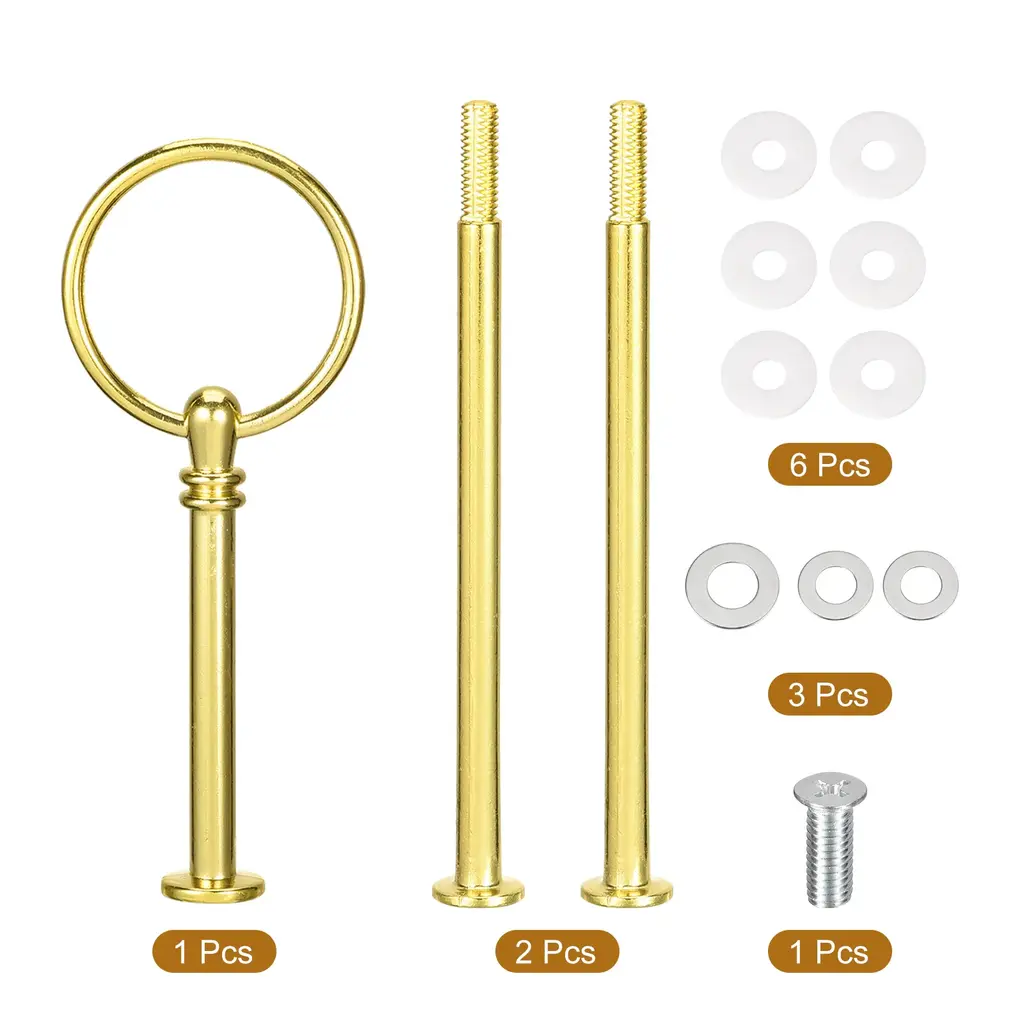 Description:Made of good hardness zinc alloy material, this cake plate stand handle is sturdy and durable to use, strong enough to ensure the stability of the stand, and can be used for a long time without fading.Works with ceramic, glass or metal plates(The Plates Are Not Included Here!) to support multi-tiered cake, cupcake or fruit trays, pair it with different types of desserts and fruits to make your plate look more exquisite and charming, having a wonderful time with your family and friends. The stand is designed with a special style handle, which looks beautiful and elegant, making it easy to carry and move, meanwhile, easy to install and connect poles together to form long poles. Detachable and easy to store, good for daily and outdoor use.The cake stand handle is suitable for various occasions, such as home baking, party decoration, banquets, wedding receptions, birthday parties, tea parties, etc. and other activities.Specification:Material: Zinc AlloyConnecting Rod Size: 120x14mm/4.72"x0.55"(L*W)Top Rod Size: 115x45mm/4.53"x1.77"(L*W)Screw Length: 17mmPackage Content:1 Set - 3Pcs x Rods with Mounting Parts