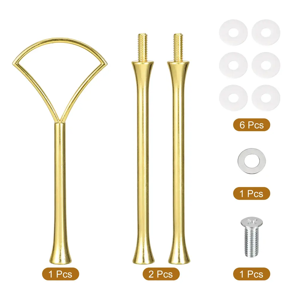 Cake Tray Stand Handle Cupcake Dessert Plate Hardware Fitting Holder Rod Stand Handle, 3-Tiers - Gold - 2 Set