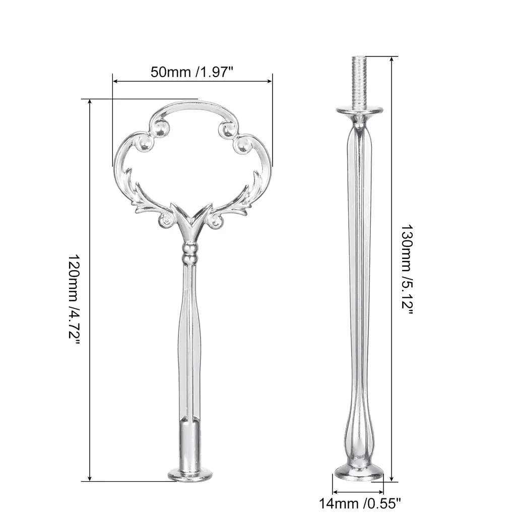 Description:Made of good hardness zinc alloy material, this cake plate stand handle is sturdy and durable to use, strong enough to ensure the stability of the stand, and can be used for a long time without fading.Works with ceramic, glass or metal plates(The Plates Are Not Included Here!) to support multi-tiered cake, cupcake or fruit trays, pair it with different types of desserts and fruits to make your plate look more exquisite and charming, having a wonderful time with your family and friends. The stand is designed with a special style handle, which looks beautiful and elegant, making it easy to carry and move, meanwhile, easy to install and connect poles together to form long poles. Detachable and easy to store, good for daily and outdoor use.The cake stand handle is suitable for various occasions, such as home baking, party decoration, banquets, wedding receptions, birthday parties, tea parties, etc. and other activities.Specification:Material: Zinc AlloyConnecting Rod Size: 130x14mm/5.12"x0.55"(L*W)Top Rod Size: 120x49mm/4.72"x1.93"(L*W)Screw Length: 15mmPackage Content:1 Set - 3Pcs x Rods with Mounting Parts