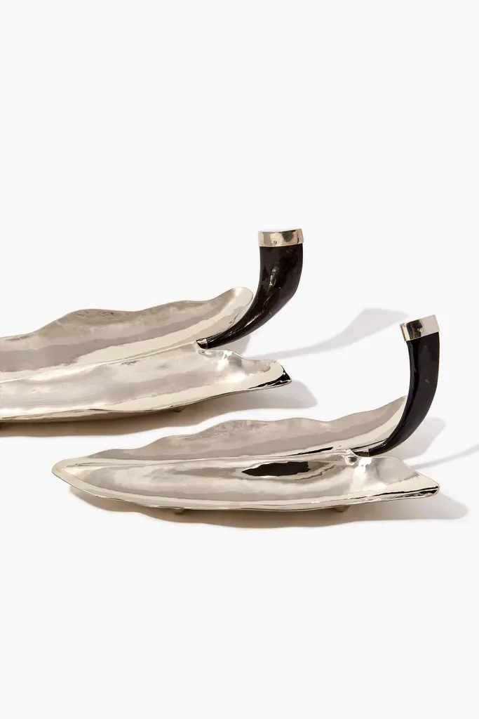 Cala Leaf Set, Small, Medium And Large Trays, Horn & Alpaca Silver