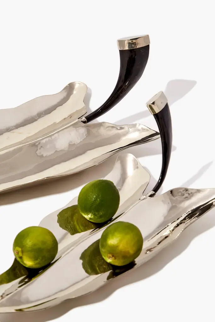 Cala Leaf Small Tray, Horn & Alpaca Silver