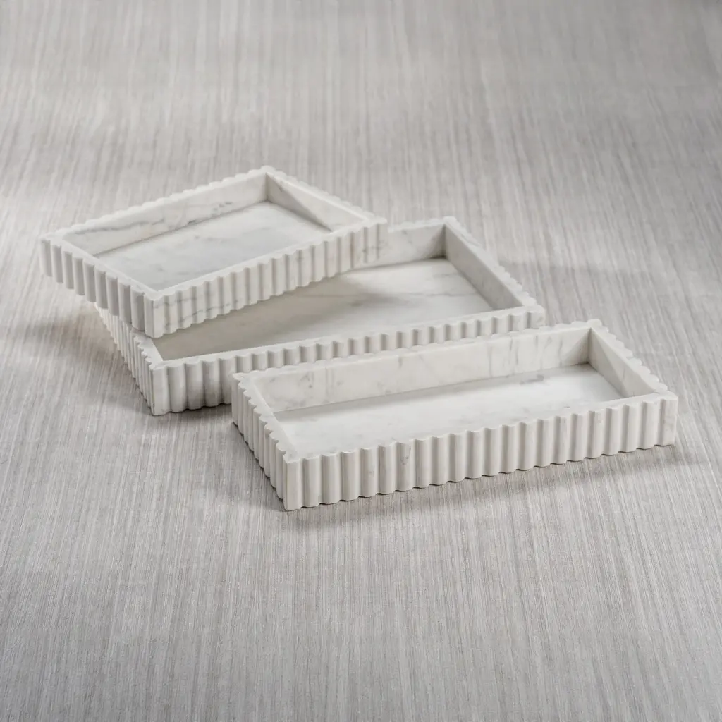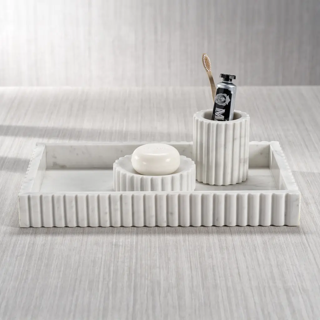 Calabria Scalloped Vanity Marble Tray - White - Large