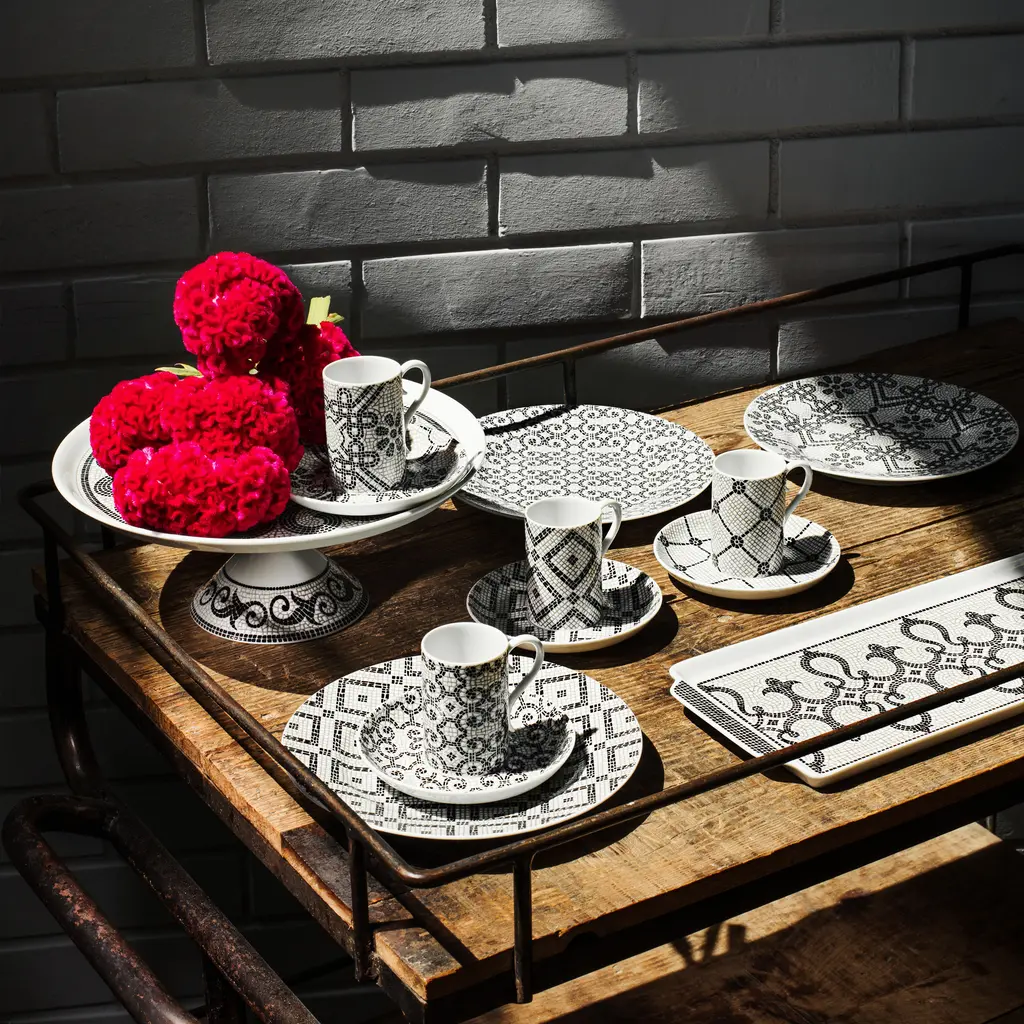 Behold the Tart Tray from the Calçada Portuguesa collection, a remarkable creation inspired by the enchanting patterns found in Portuguese cobblestone pavements. This extraordinary piece, meticulously crafted by designer Manoela Medeiros, stands as a heartfelt tribute to the enduring allure of Lisbon. The Tart Tray features intricate cobblestone-inspired patterns that beautifully encapsulate the essence of Lisbon’s winding streets and rich cultural heritage. Manoela Medeiros, renowned for her meticulous attention to detail and dedication to preserving tradition, has transformed this tray into a work of art. As you arrange your delectable tarts on this tray, you’ll not only display your culinary creations but also immerse yourself in the charm and beauty of Lisbon, thoughtfully crafted by the visionary talent of Manoela Medeiros. Each bite becomes a tribute to the city’s elegance and history.