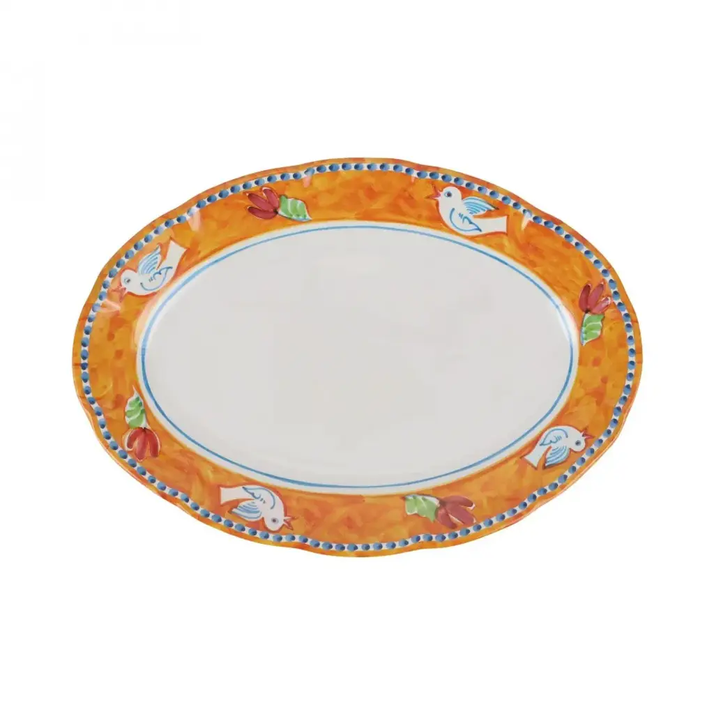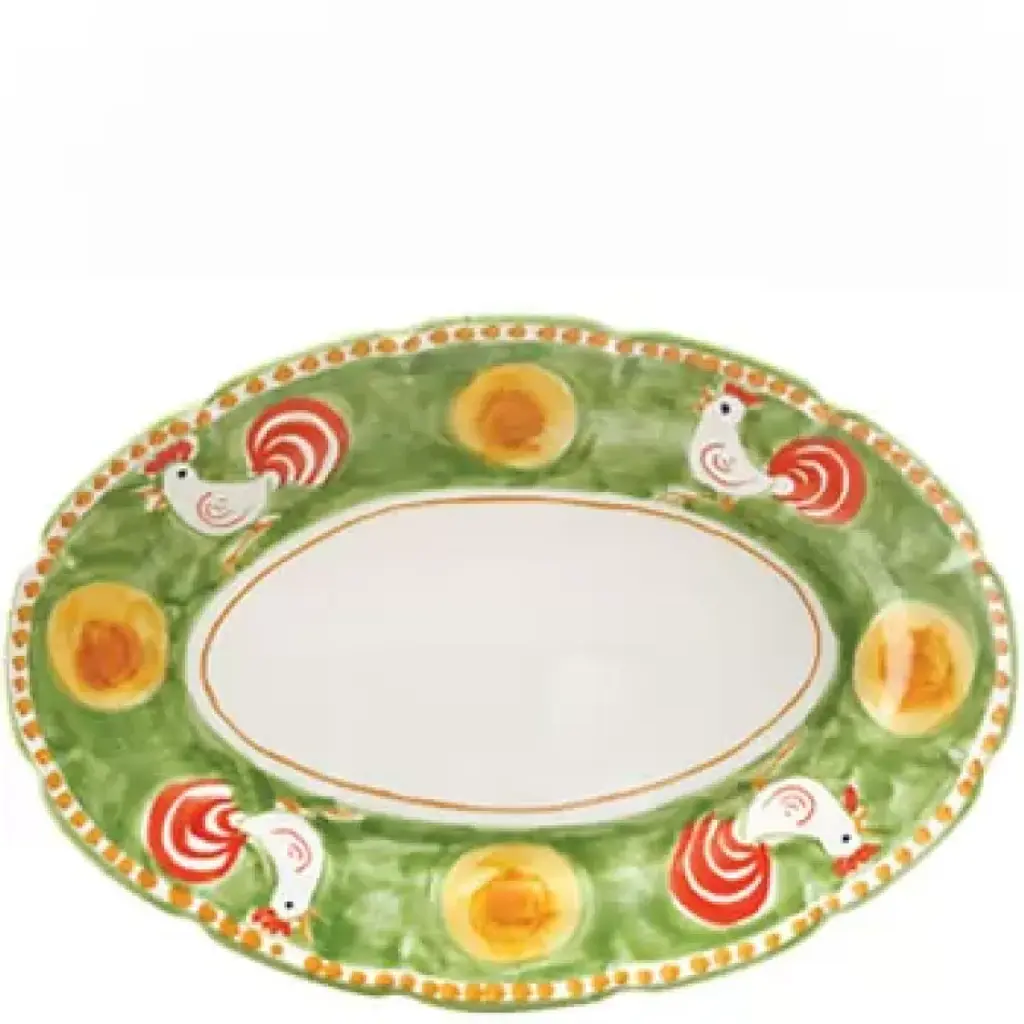 The Campagna Gallina Small Oval Tray features whimsical handpainted roosters and is part of our flagship dinnerware collection from the famed Amalfi Coast. Since 1983, Vietri has specialized exclusively in Italian handcrafted ceramics, stainless and pewter flatware, mouth blown glassware, lamps, urns and planters. Families of artisans with 3 or 4 generations of history create these special pieces using centuries-old techniques. The subtle color from a paintbrush and the curving stroke of the artist's hand are never repeated in quite the same way, making each piece truly unique.