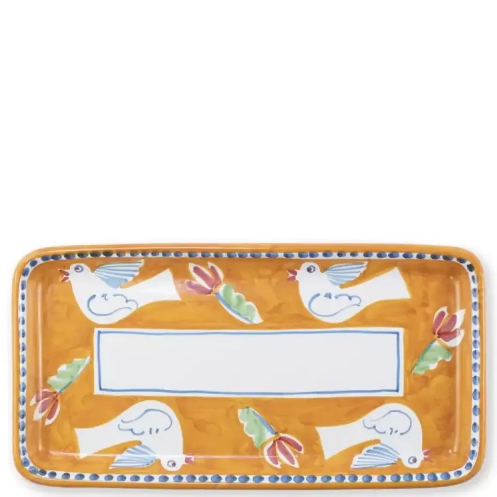 The colorful orange and blue Campagna Uccello Small Oval Tray features whimsical handpainted birds and flowers. Mix with other animals from the Campagna collection to create a fun table that captures the vitality of the Italian countryside! Since 1983, Vietri has specialized exclusively in Italian handcrafted ceramics, stainless and pewter flatware, mouth blown glassware, lamps, urns and planters. Families of artisans with 3 or 4 generations of history create these special pieces using centuries-old techniques. The subtle color from a paintbrush and the curving stroke of the artist's hand are never repeated in quite the same way, making each piece truly unique.