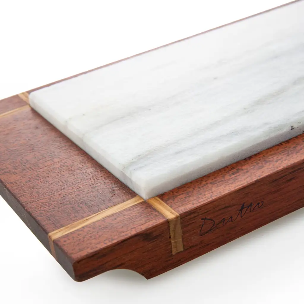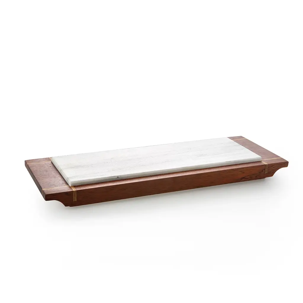 This extraordinary cheese tray belongs to an exclusive series of pieces realized for some Italian Michelin-star restaurants. A beautifully crafted design of timeless sophistication, it features a removable white marble surface enclosed in a fascinating and refined Canaletto walnut frame, adorned with inserts in durmast and finished with a certified protective oil. Customizable, please ask the Concierge for options.