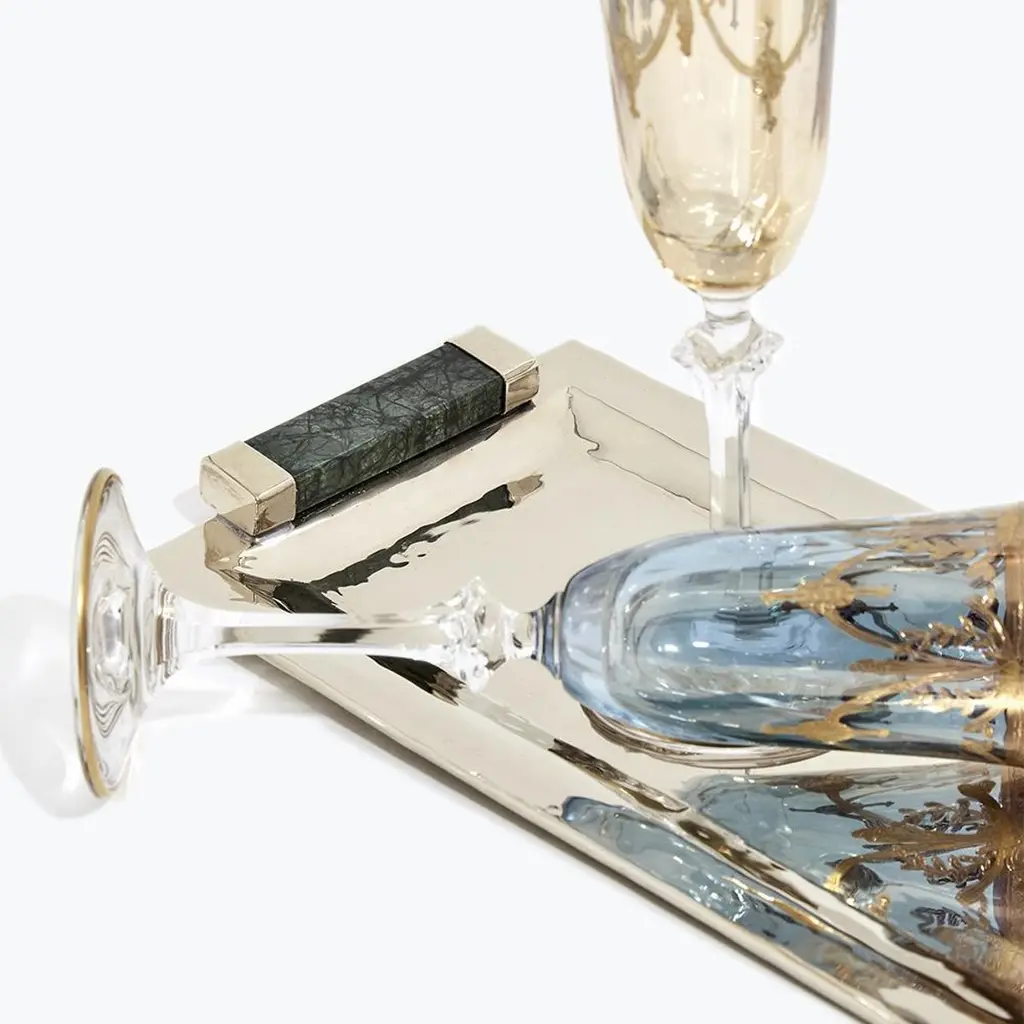 Capa Large Narrow Tray, Alpaca Silver & Green Marble