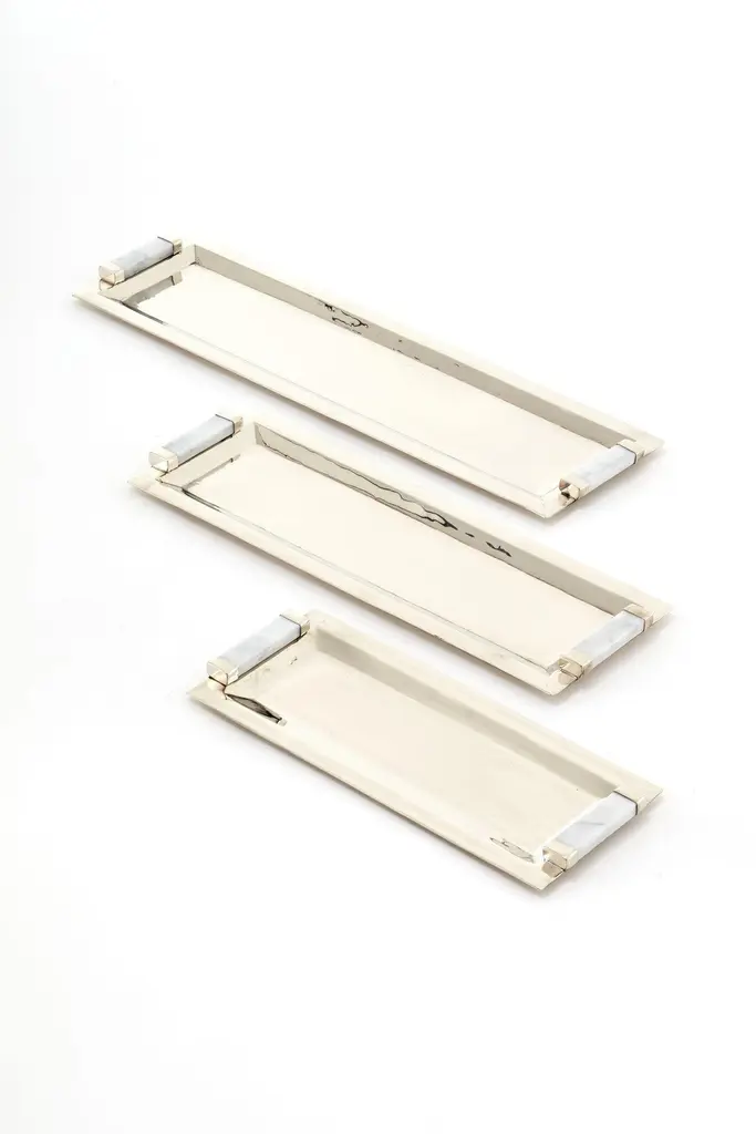 Capa Large Narrow Tray, Alpaca Silver & Grey Marble