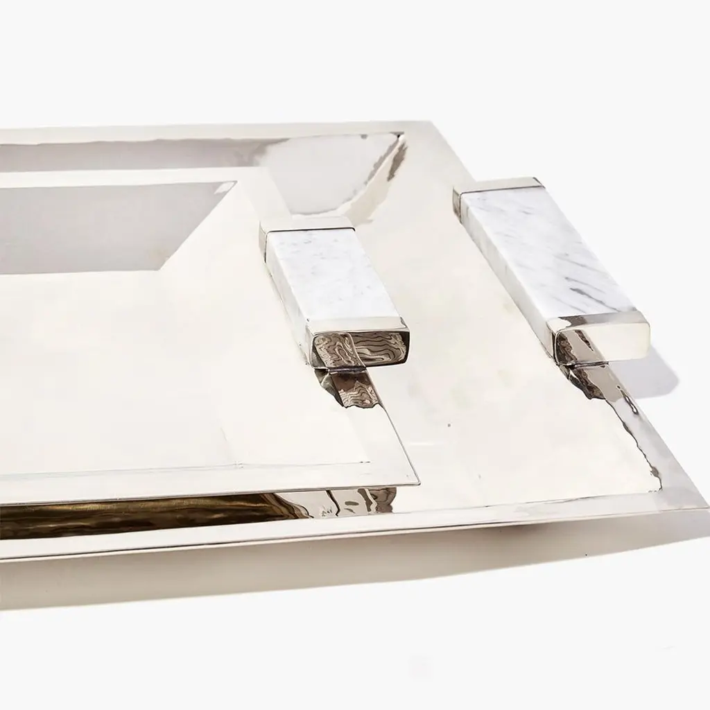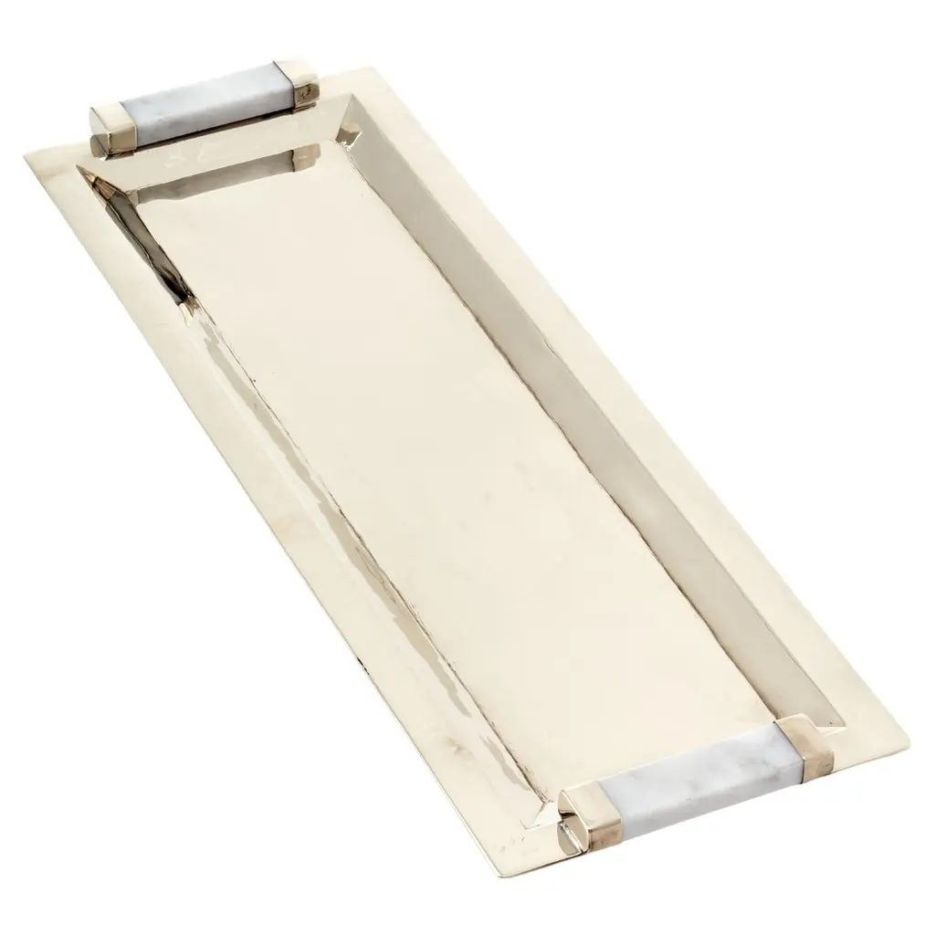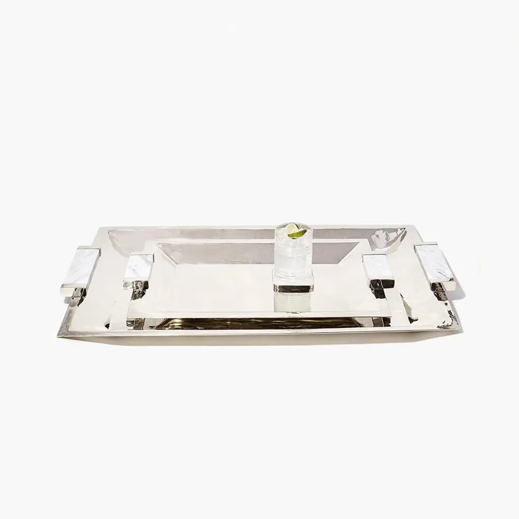 Capa Large Rectangular Tray, Alpaca Silver & Gray Marble