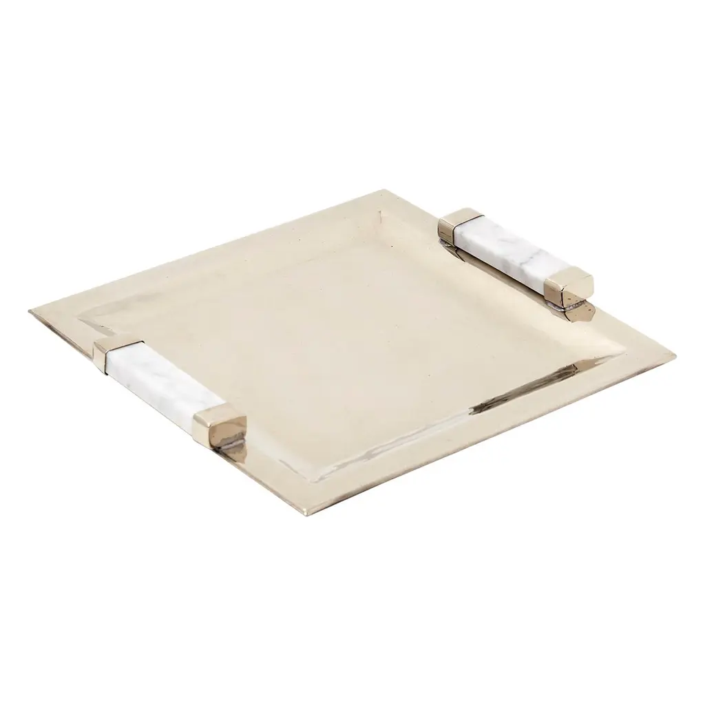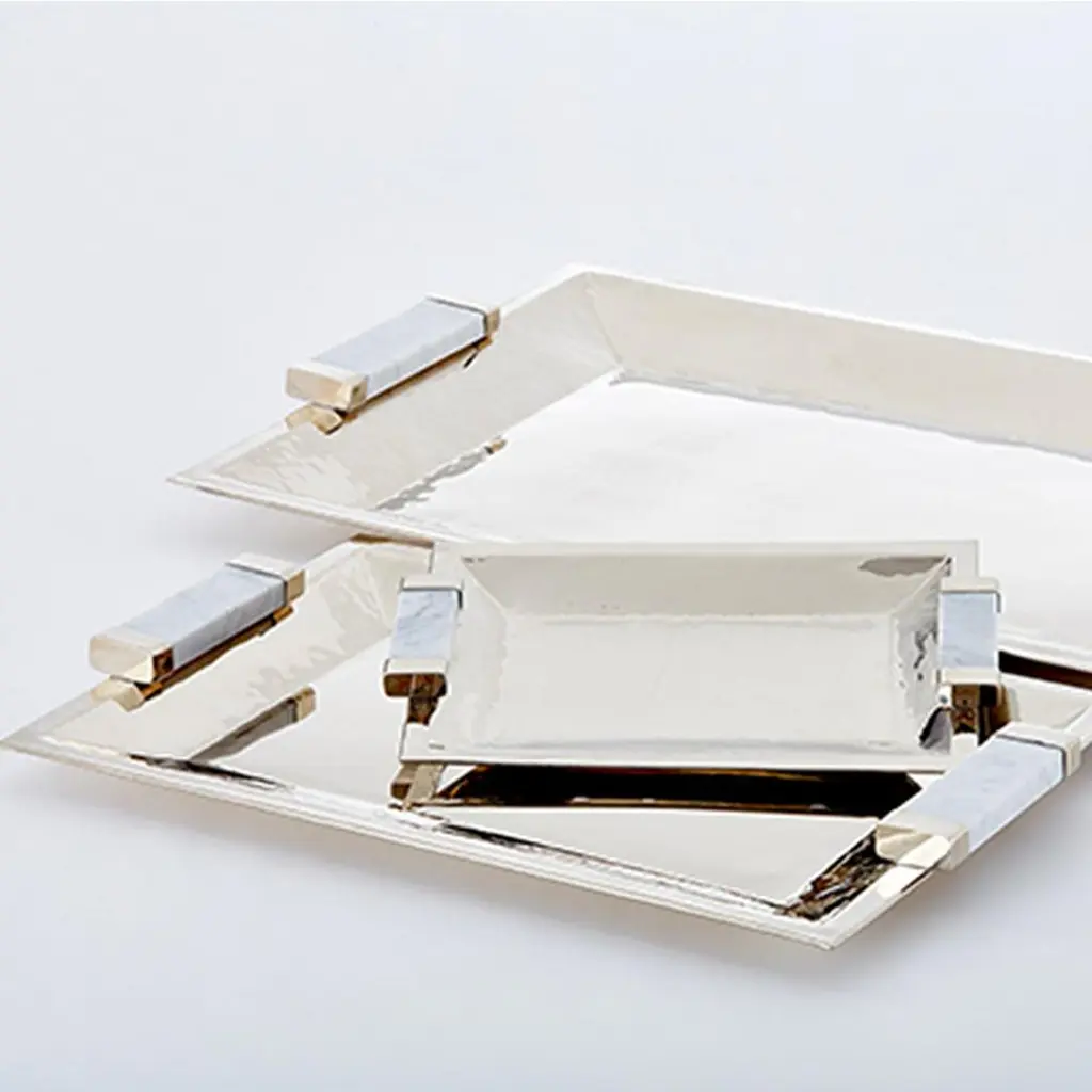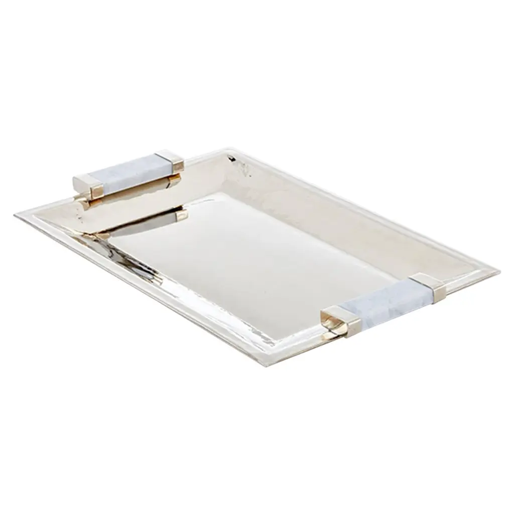 Capa Small Rectangular Tray, Alpaca Silver & Gray Marble