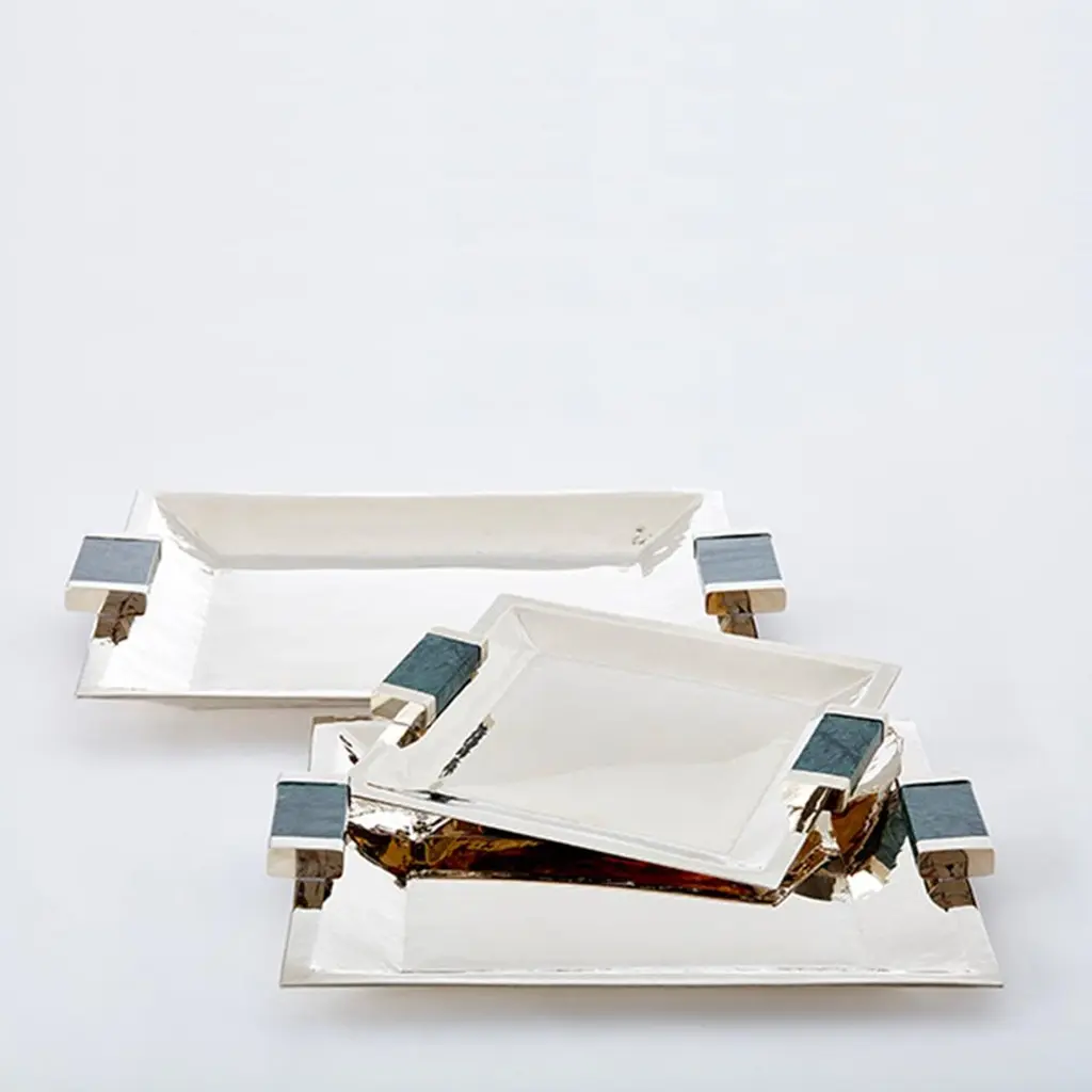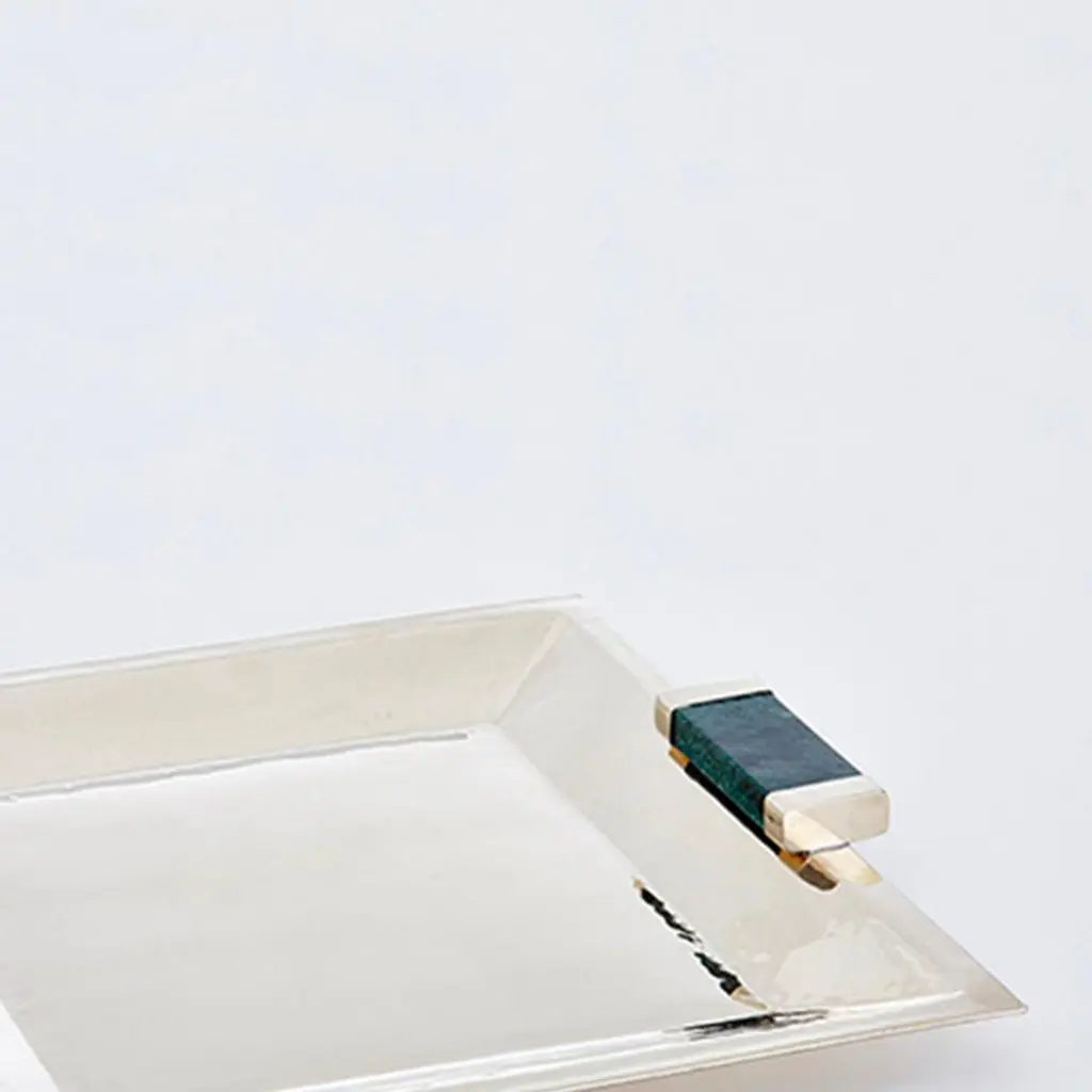 Capa Small Square Tray, Alpaca Silver & Green Marble