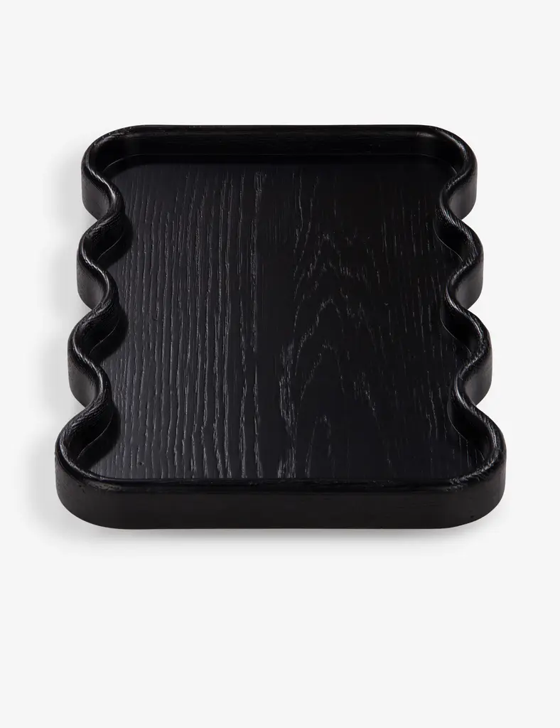 Add an artful touch to any tabletop with the Cario tray. The wavy shape and rounded edges bring a sculptural quality to the solid oak, styling a chic and versatile accent for everything from corralling accessories to staging a modern vignette.